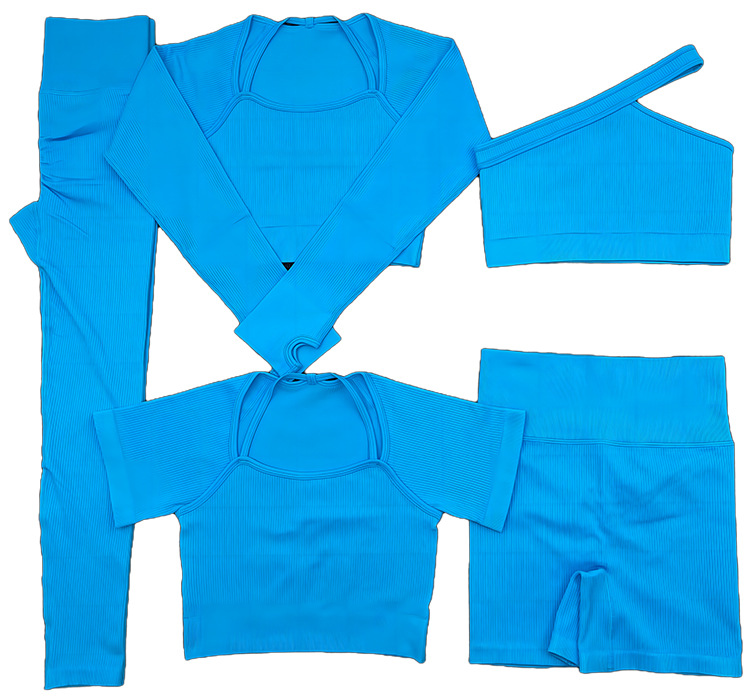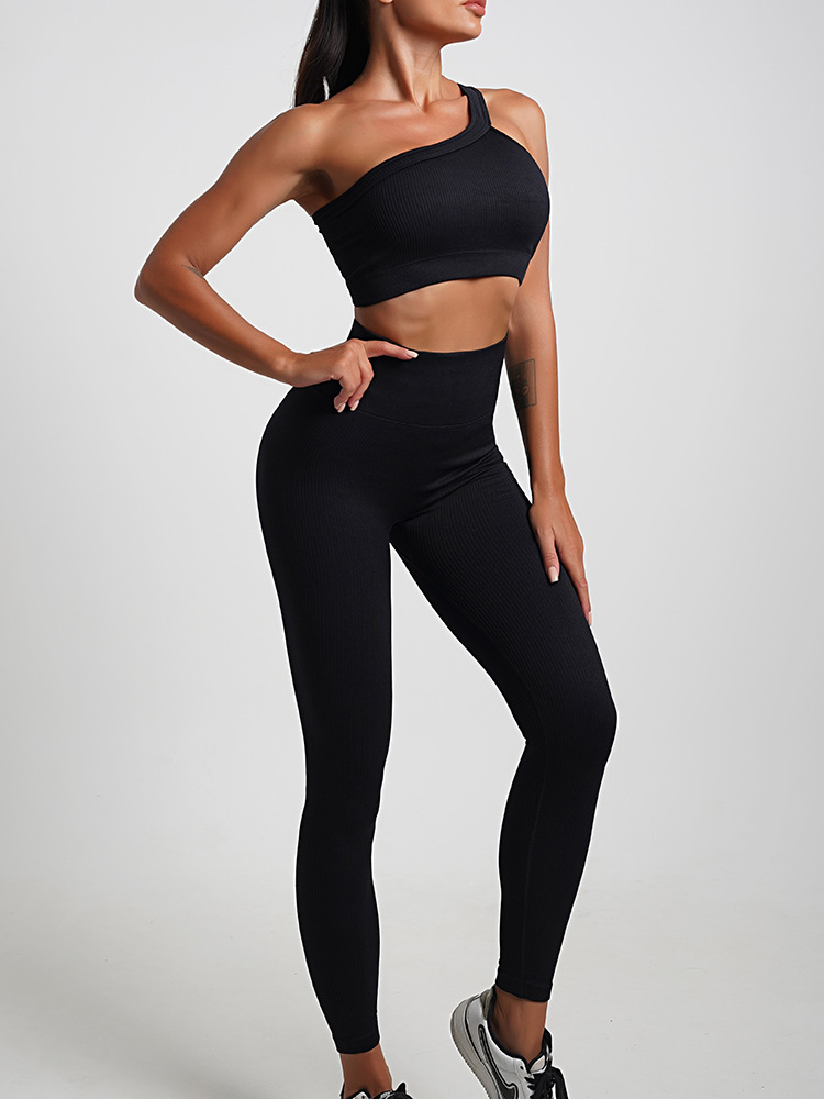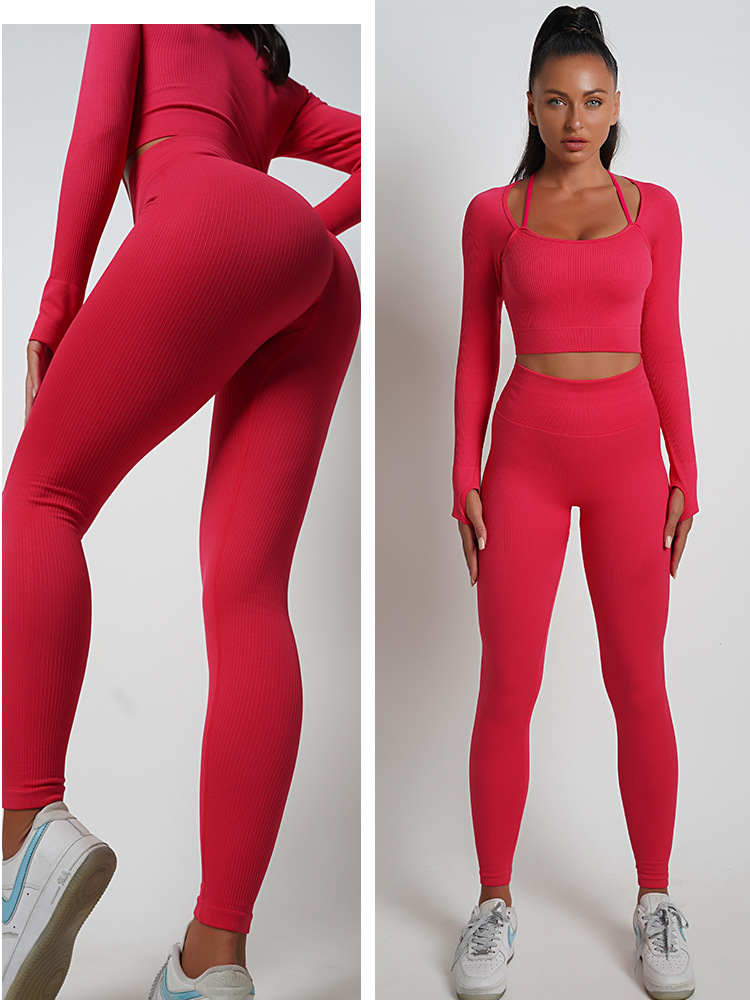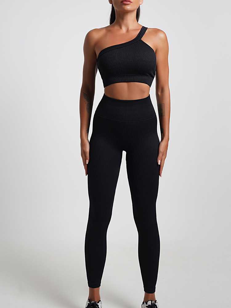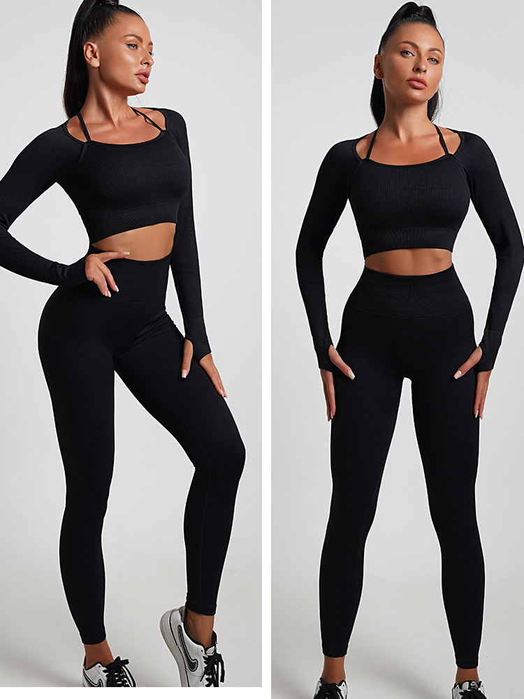 유럽 및 미국 스타일의 신축성 있는 무봉제 요가복 스포츠 러닝 세트 신상품 조끼 요가 바지 피트니스복 여성 도매