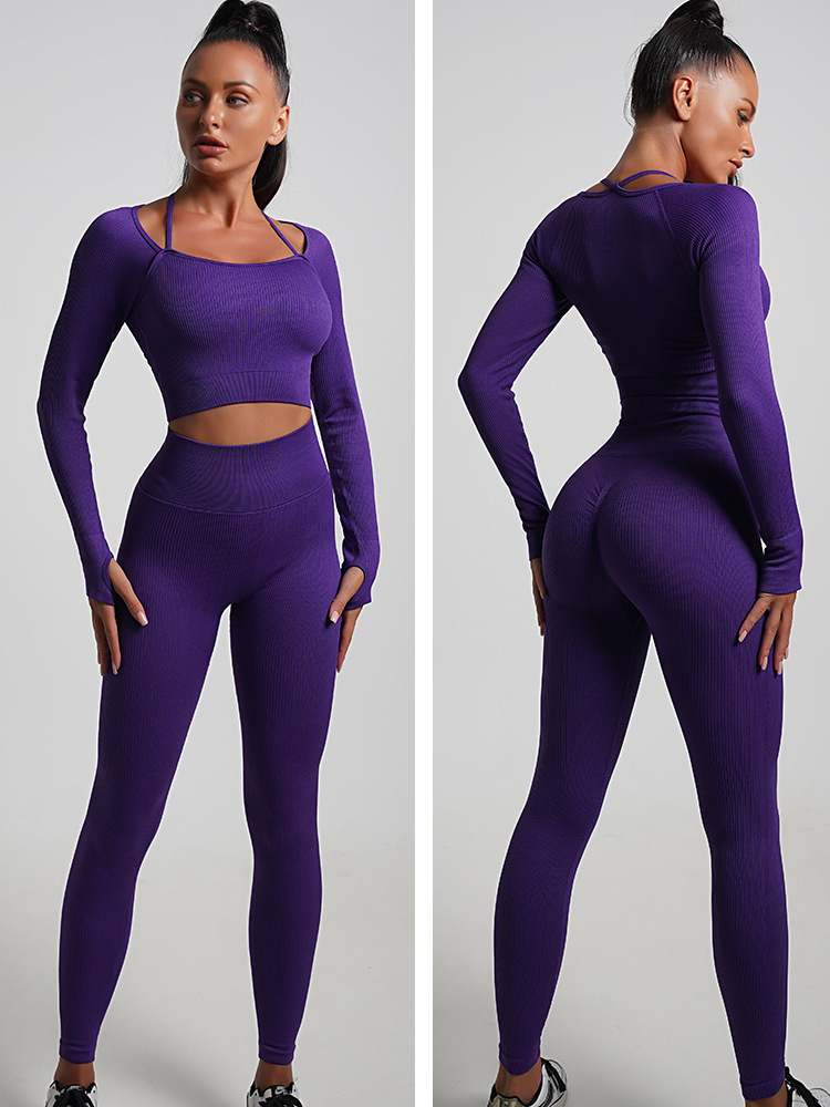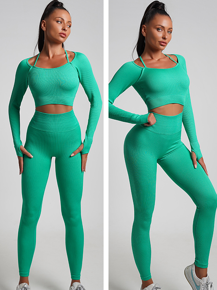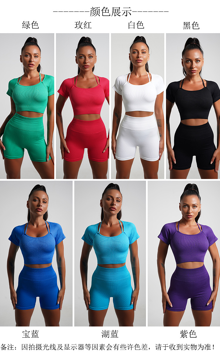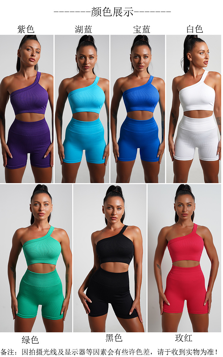 유럽 및 미국 스타일의 신축성 있는 무봉제 요가복 스포츠 러닝 세트 신상품 조끼 요가 바지 피트니스복 여성 도매스토어 가기