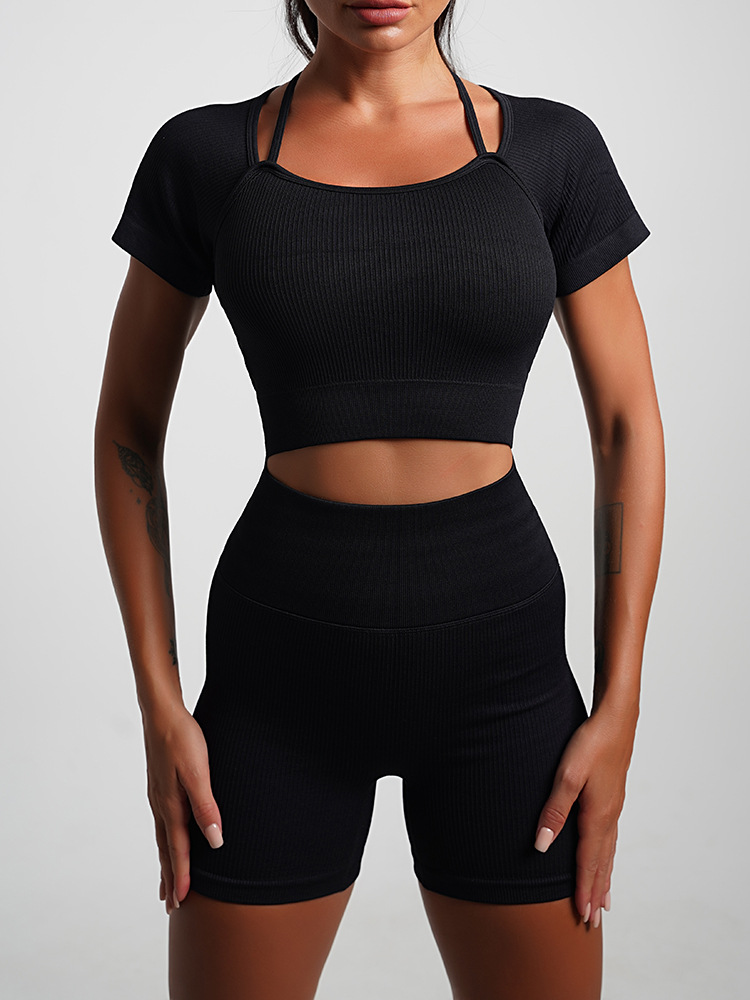 • 검은 색 짧은 소매 (가슴 패드 포함)