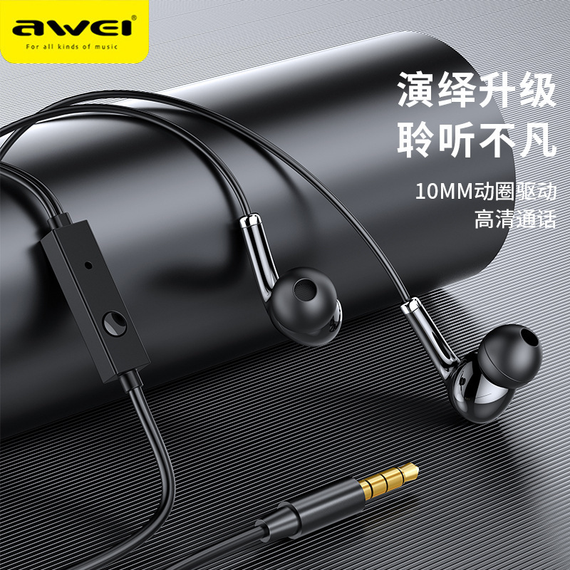 AWEI 인라인 3.5mm 인 이어 유선 헤드셋 새로운 귀마개 와이어 제어 헤드셋 공장 재고