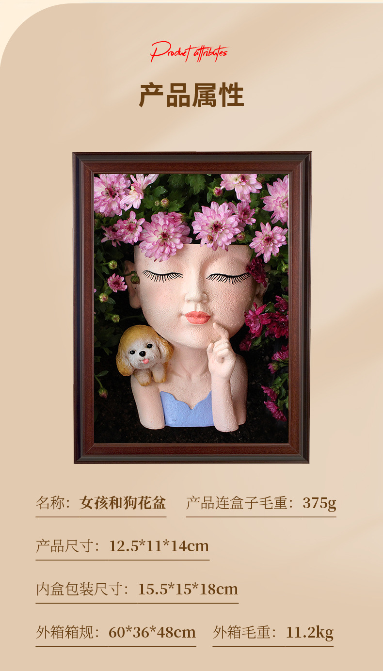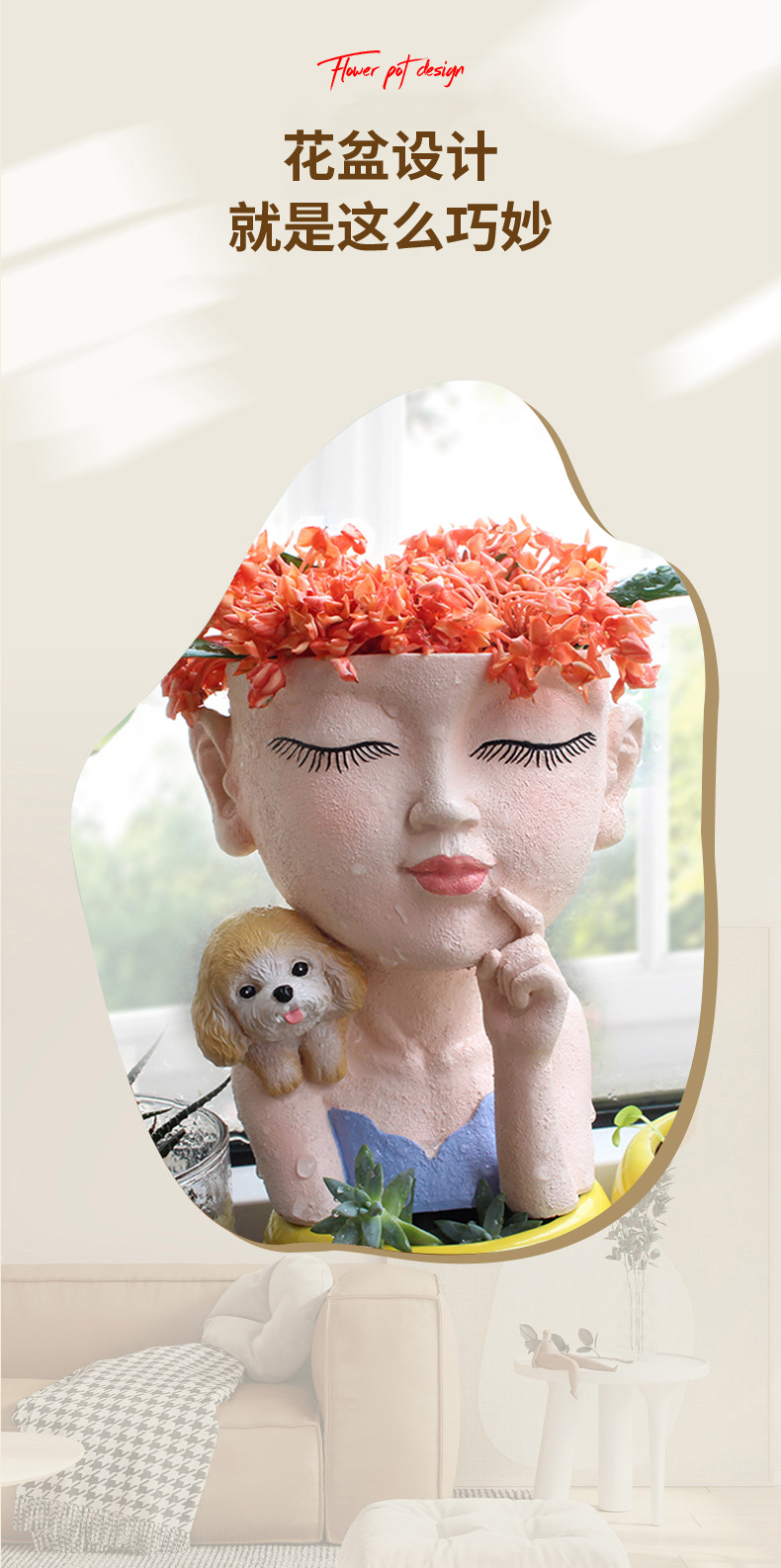 소녀 다육 꽃 냄비 바닥 창조적 인 동상 야외 풍경 정원 장식 초상화 수지 장식품 공예