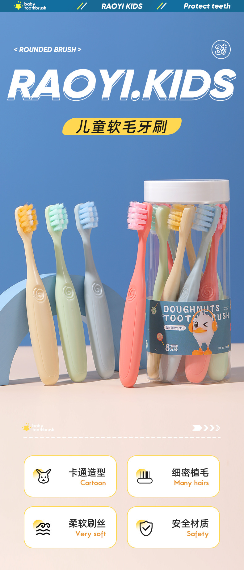 어린이 칫솔 3-12 세 아기 가정 8 배럴 부드러운 머리 고급 칫솔 가정 제조 업체 재고 도매스토어 가기