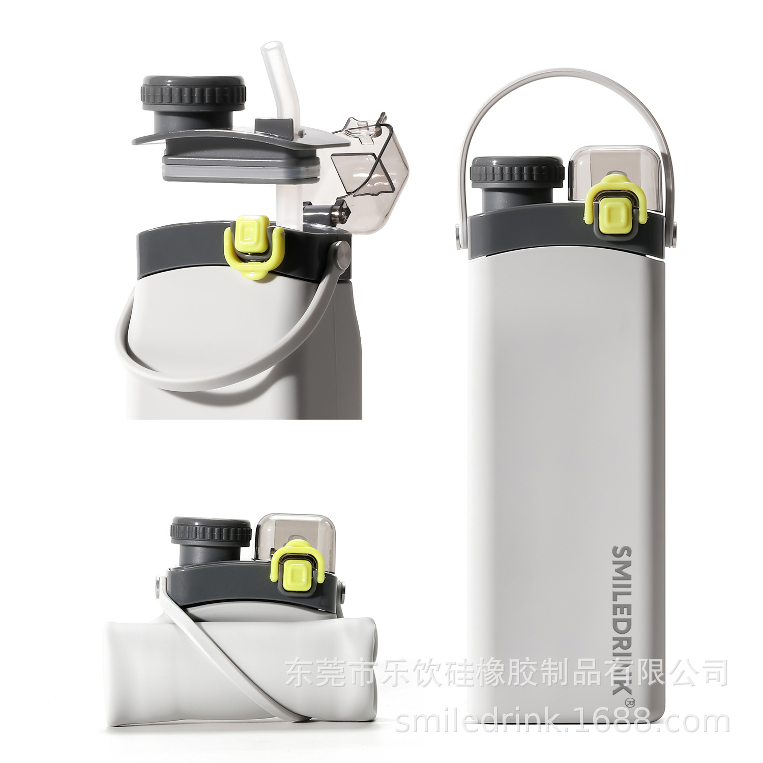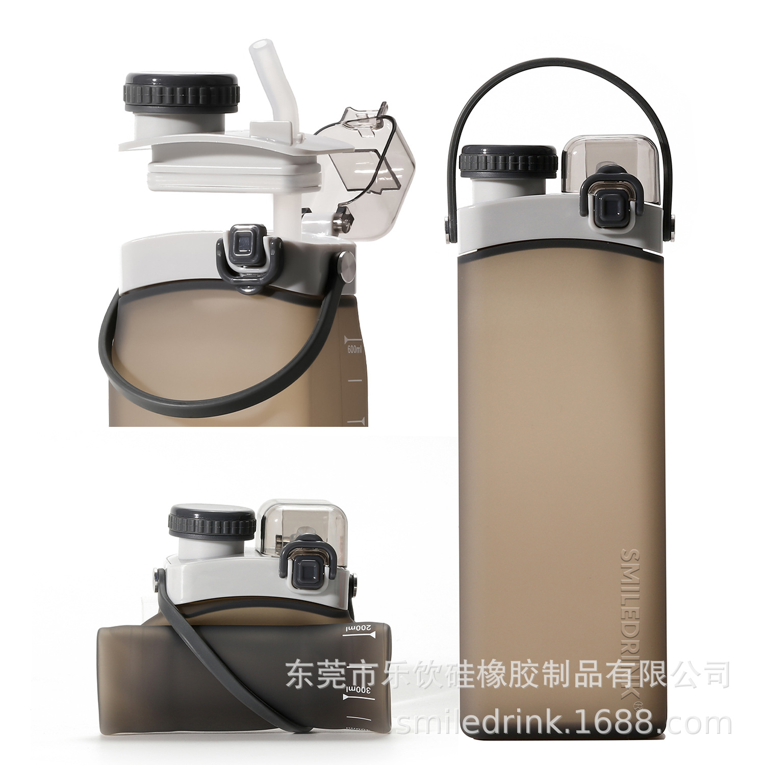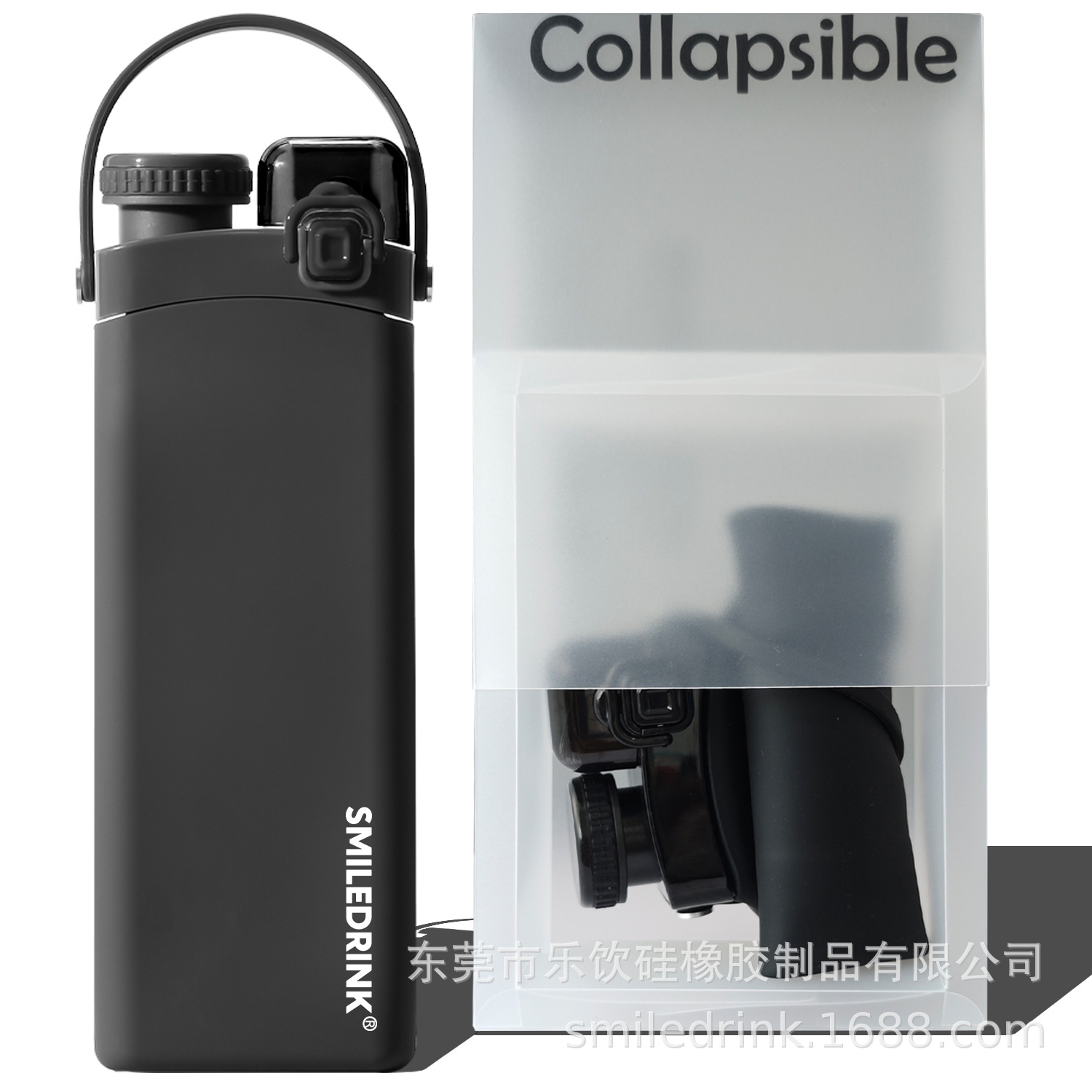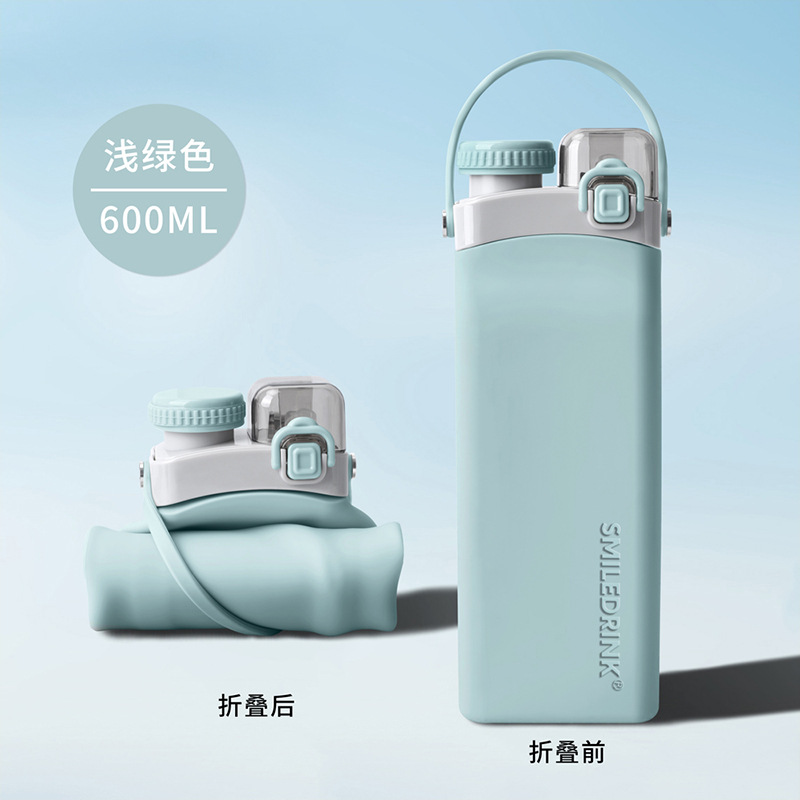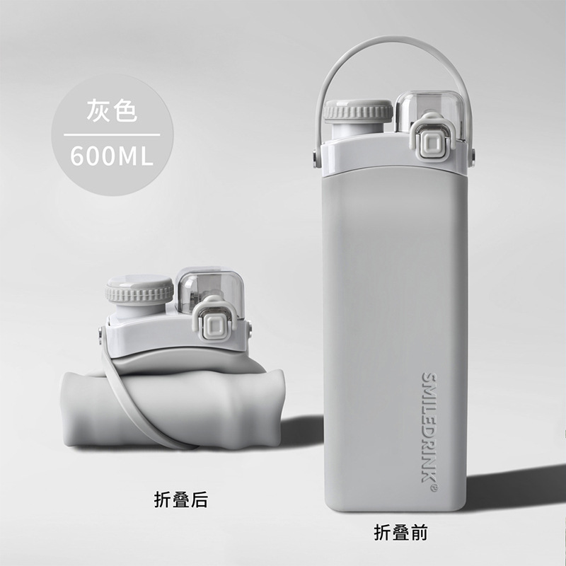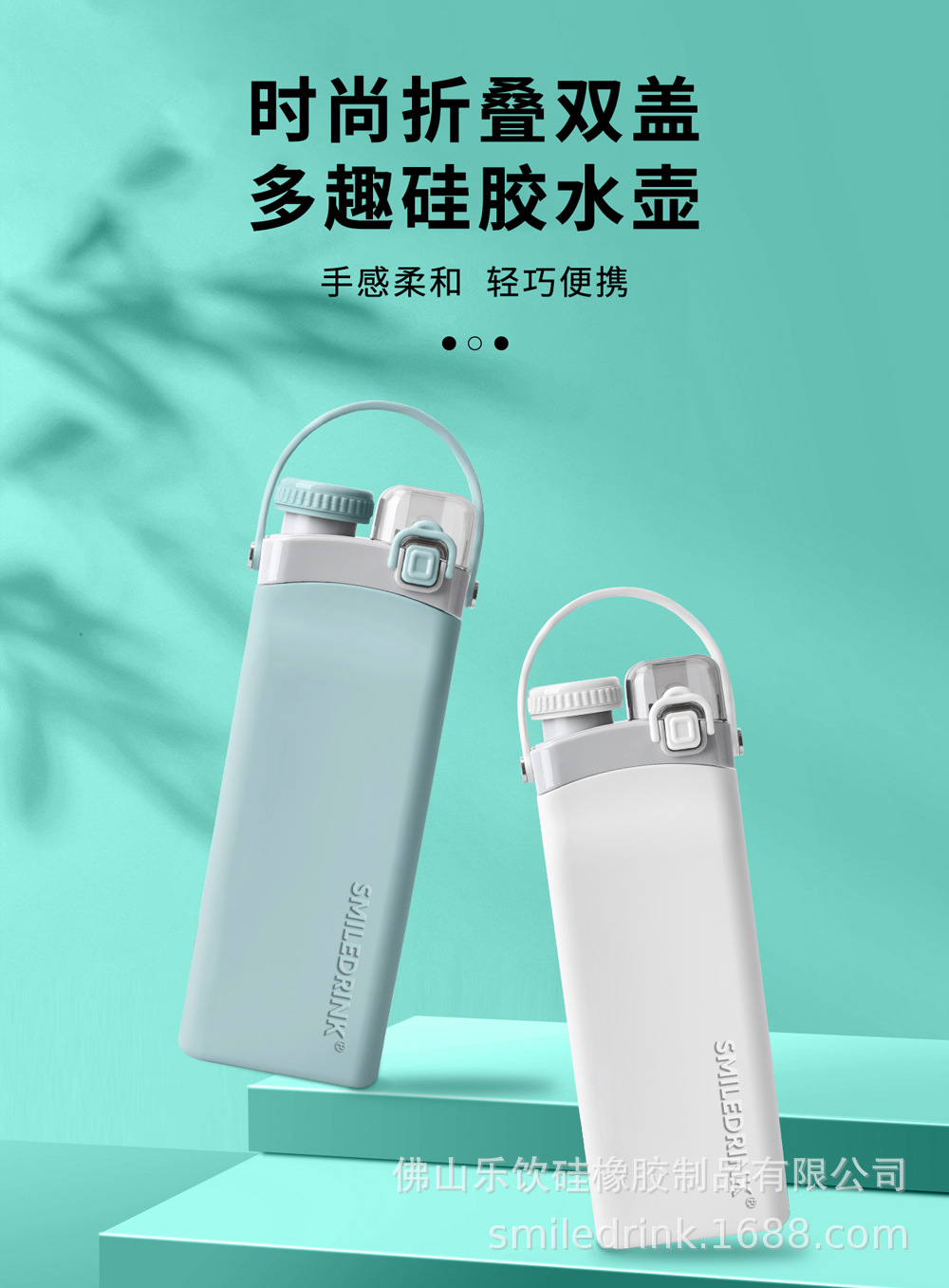 新款独特双盖防漏水可折叠耐高温食品级硅胶运动水壶水杯