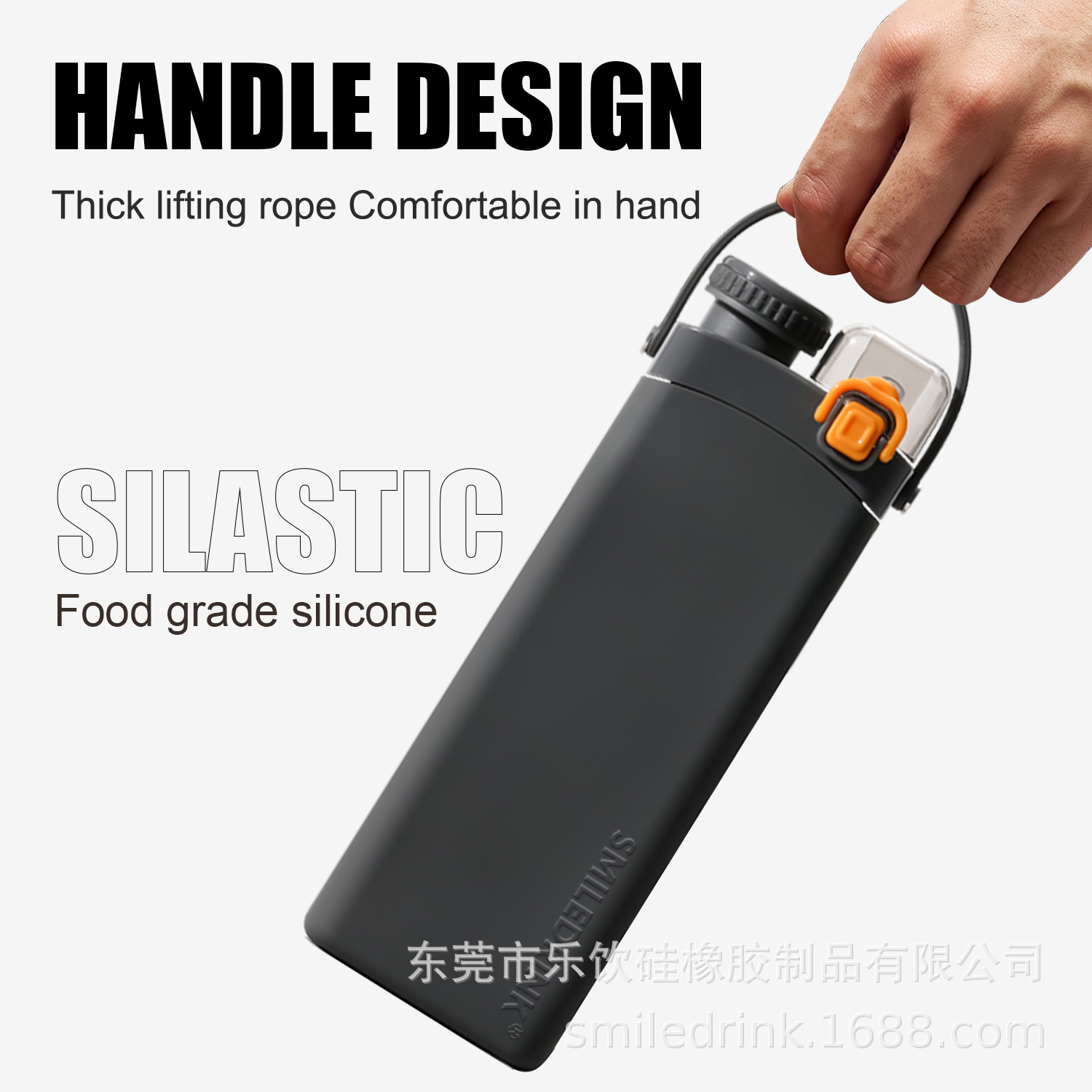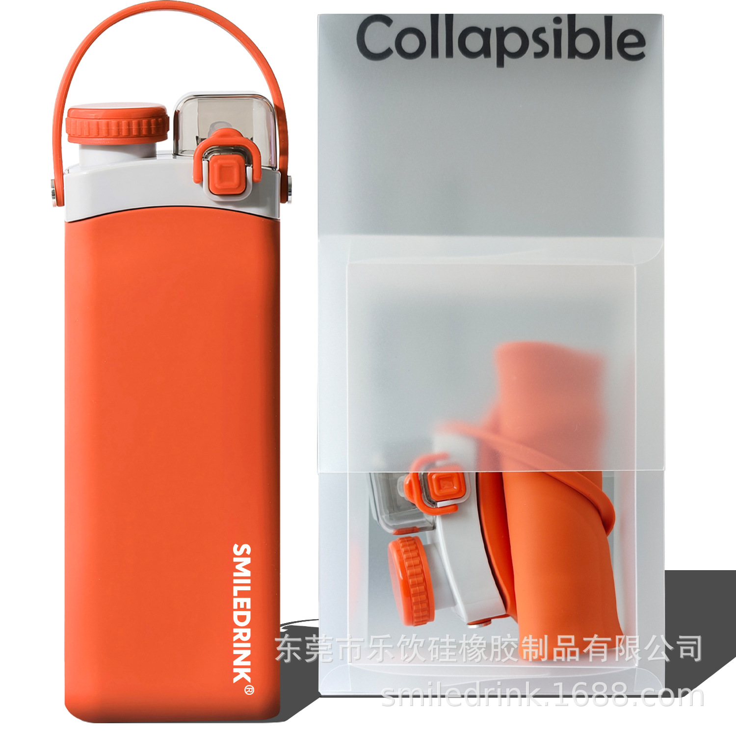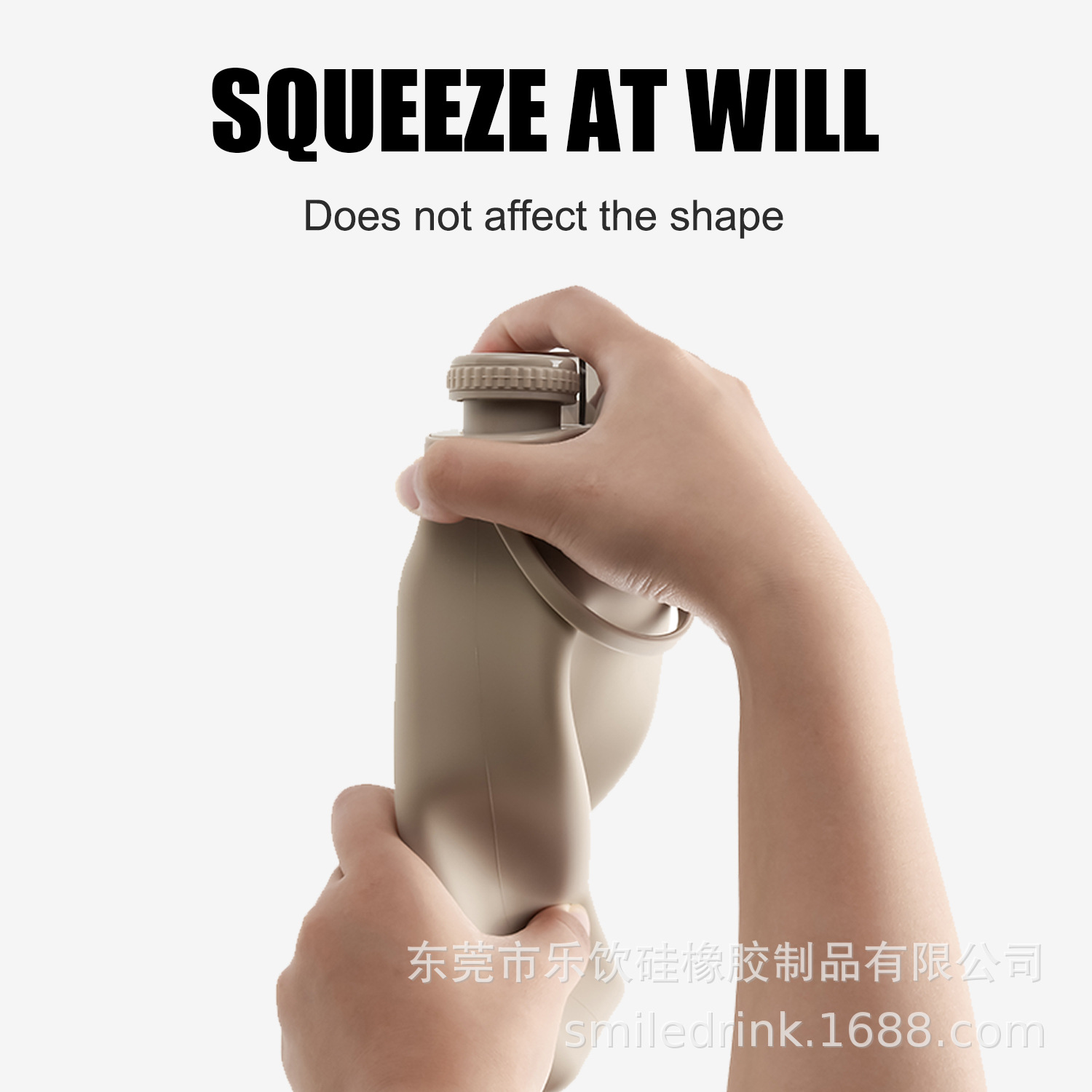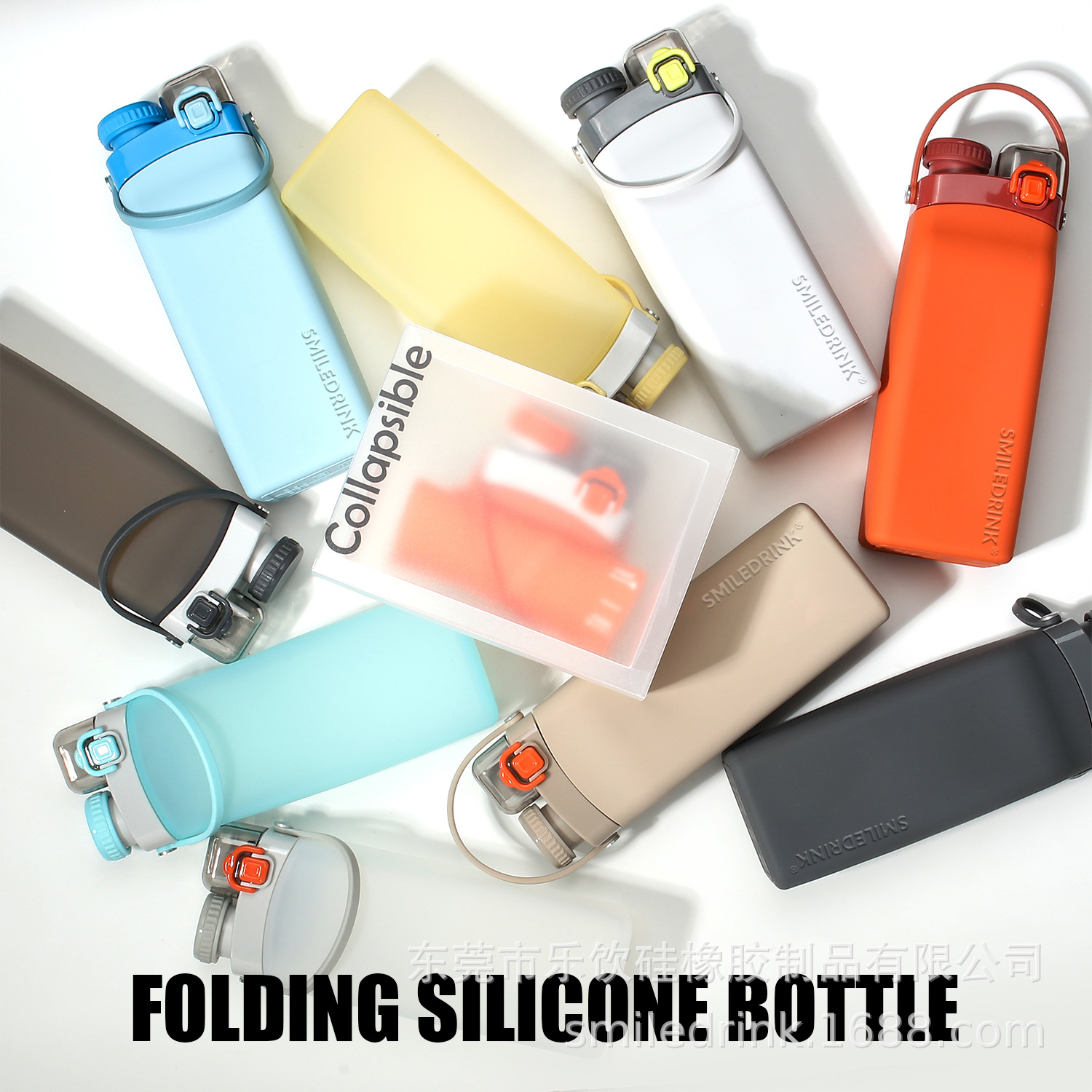 新款独特双盖防漏水可折叠耐高温食品级硅胶运动水壶水杯