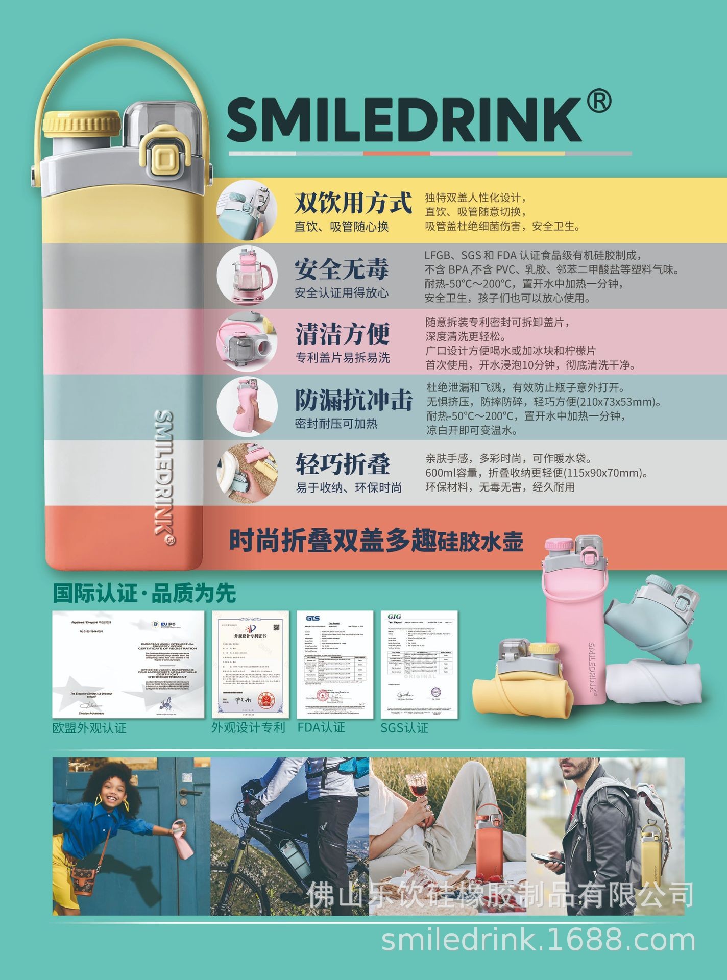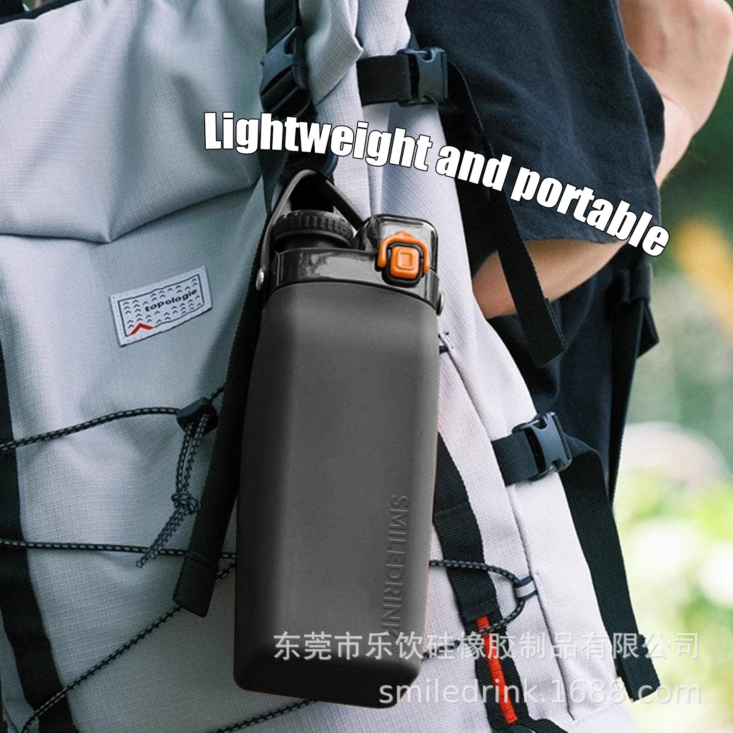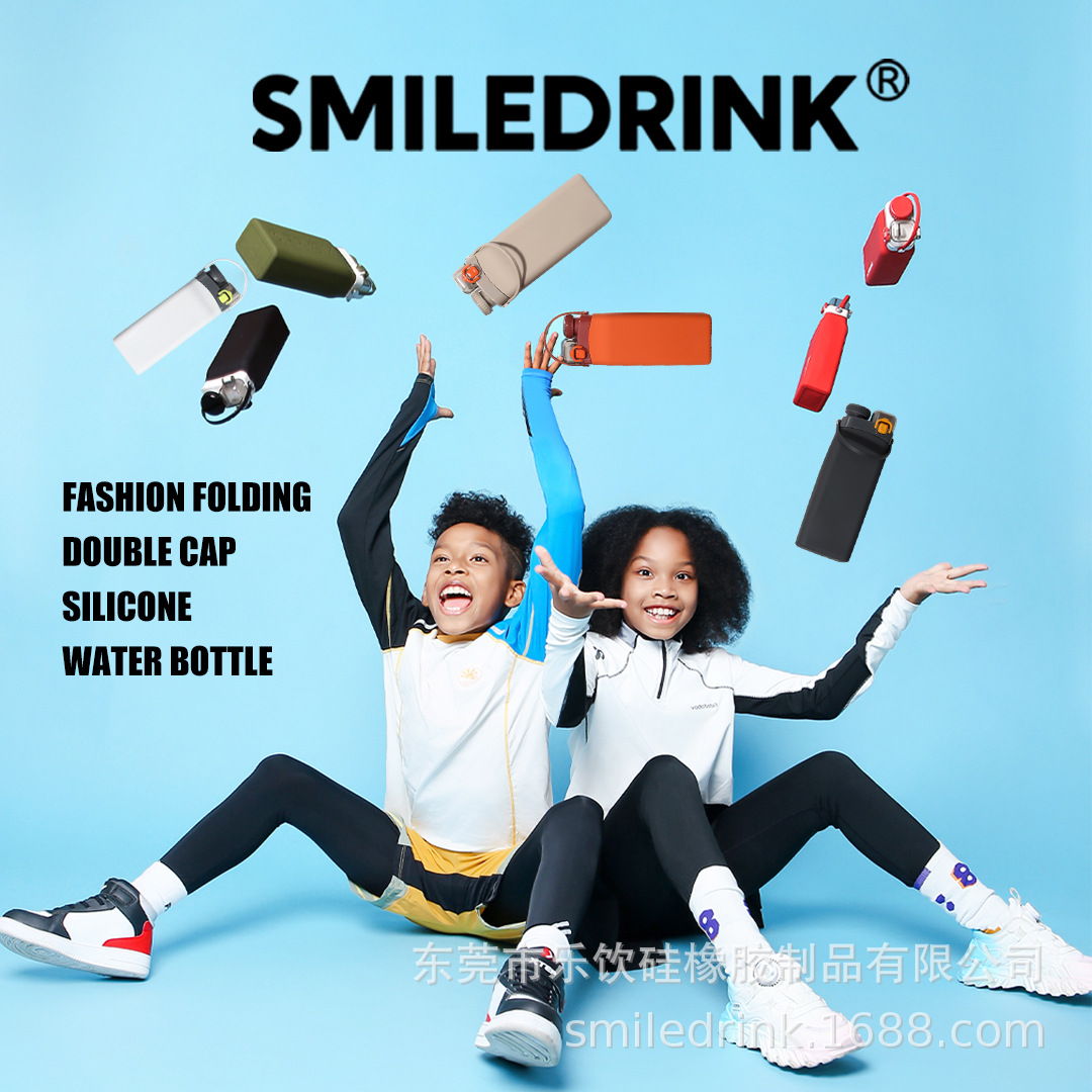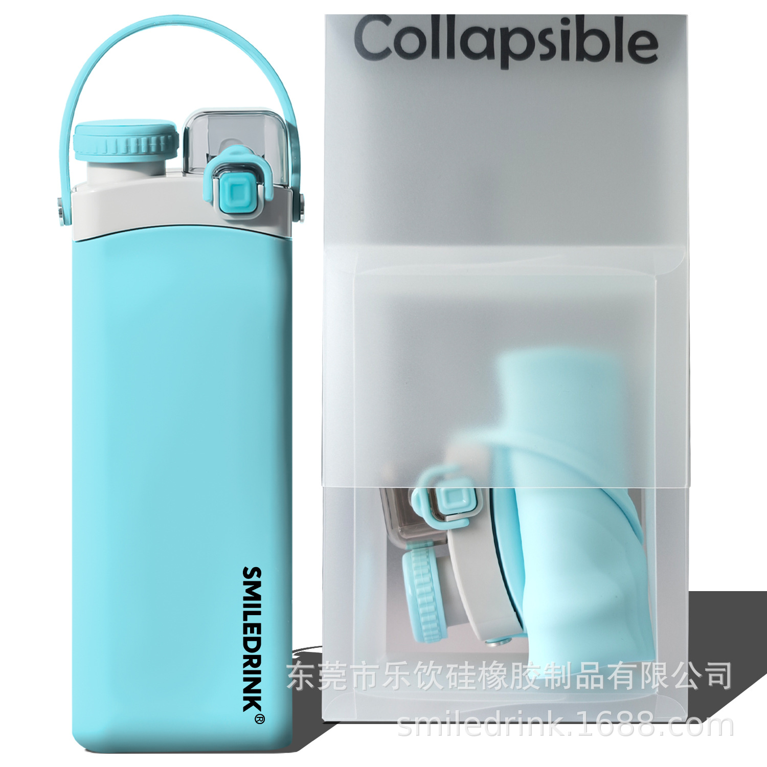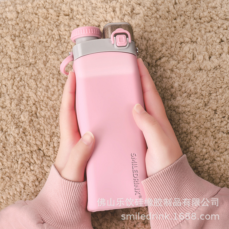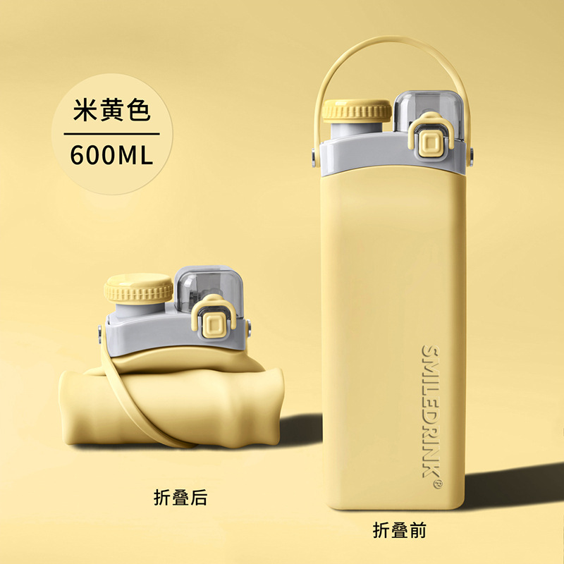 新款独特双盖防漏水可折叠耐高温食品级硅胶运动水壶水杯