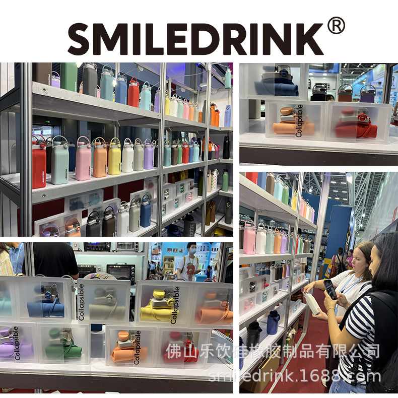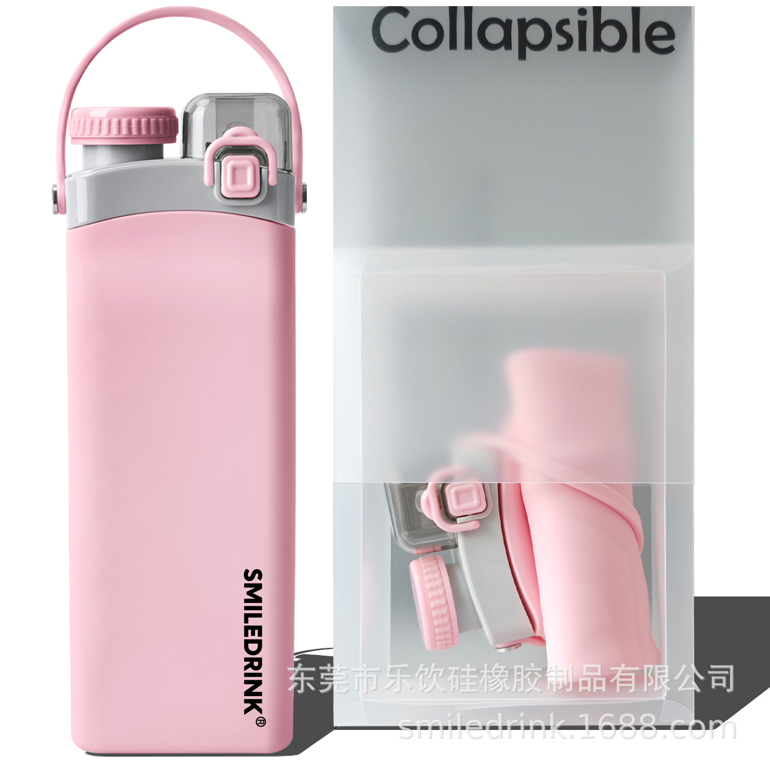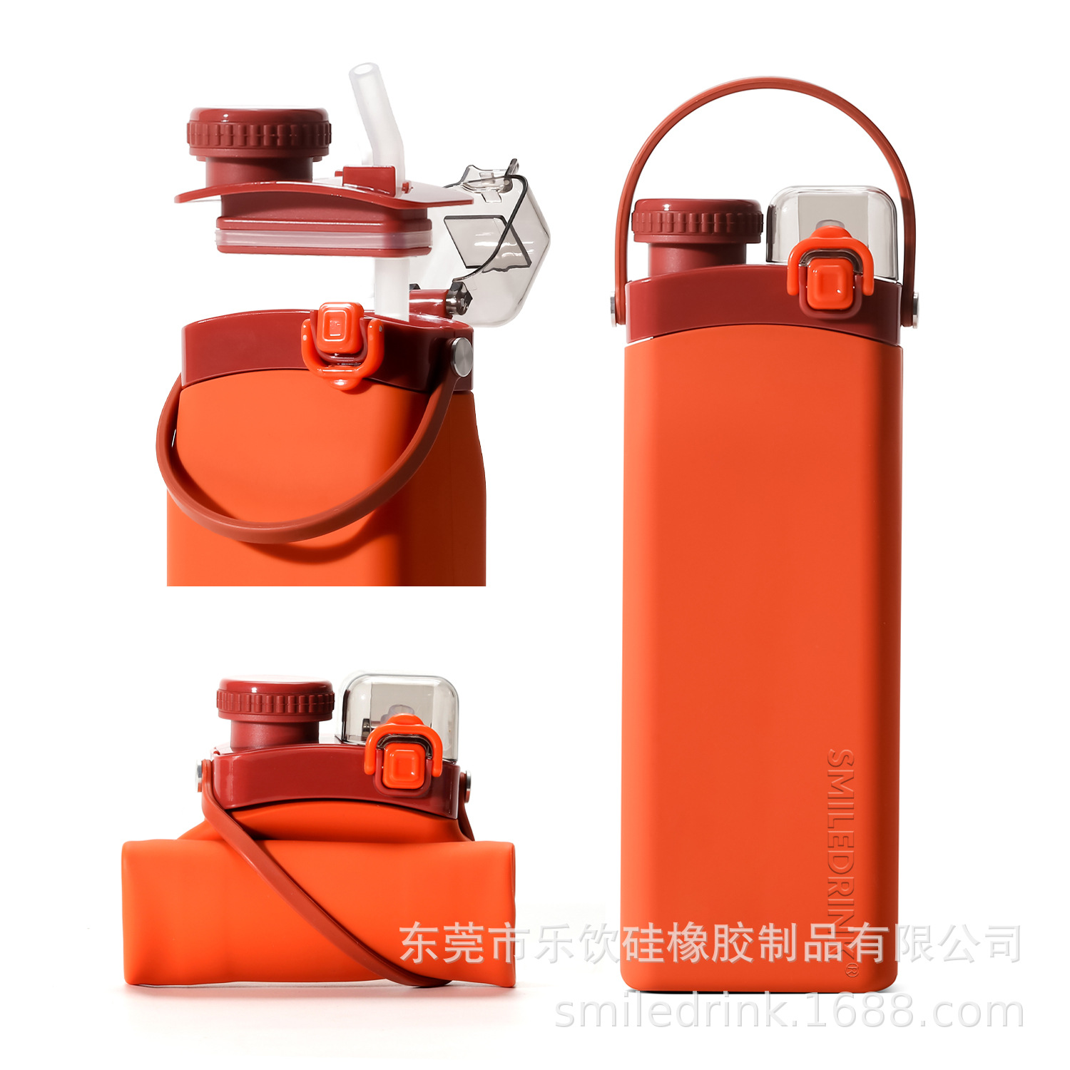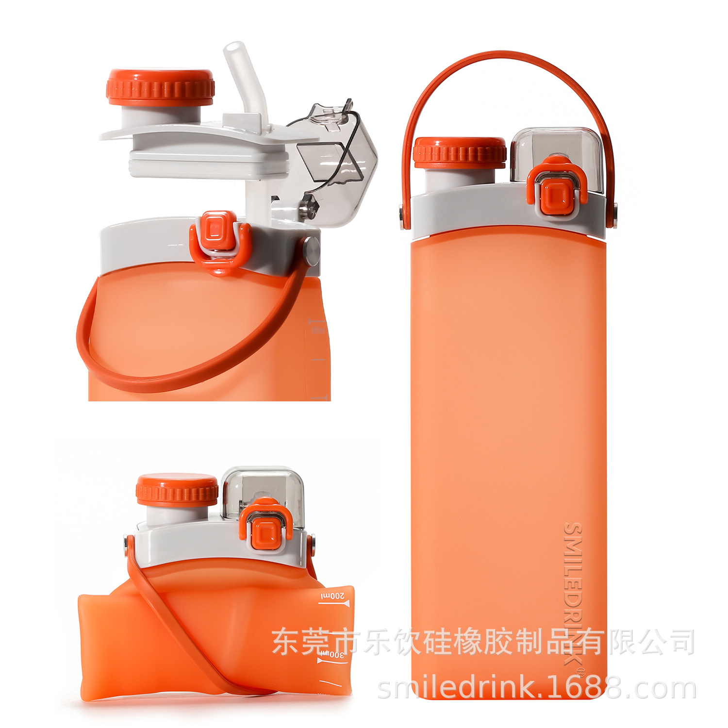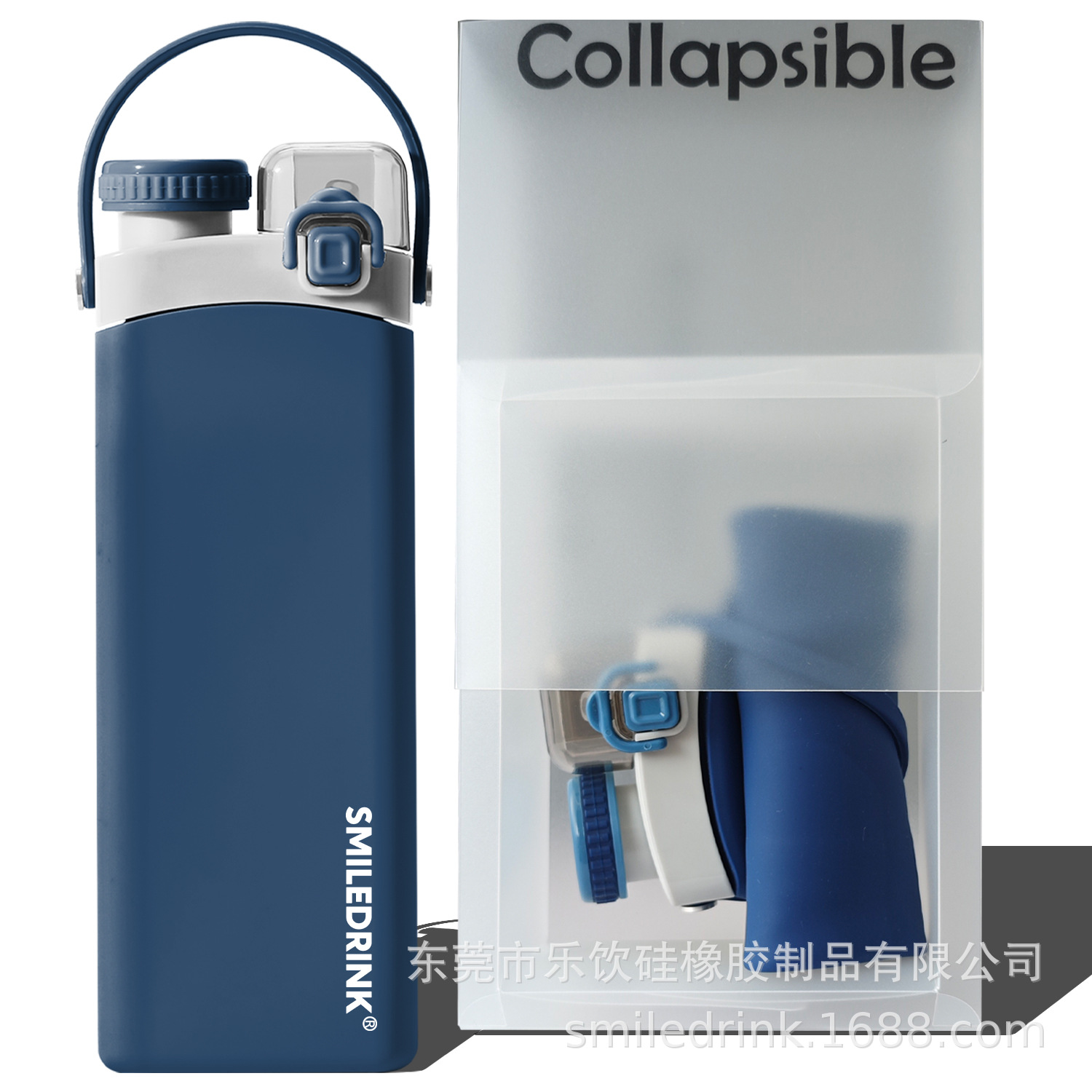 新款独特双盖防漏水可折叠耐高温食品级硅胶运动水壶水杯