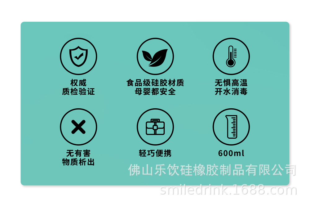2.【使用安全硅胶】硅胶壶身由 100% 不含 BPA 的食品级母婴级别硅胶制成,通过 LFGB、SGS 和 FDA 认证,确保安全饮用。