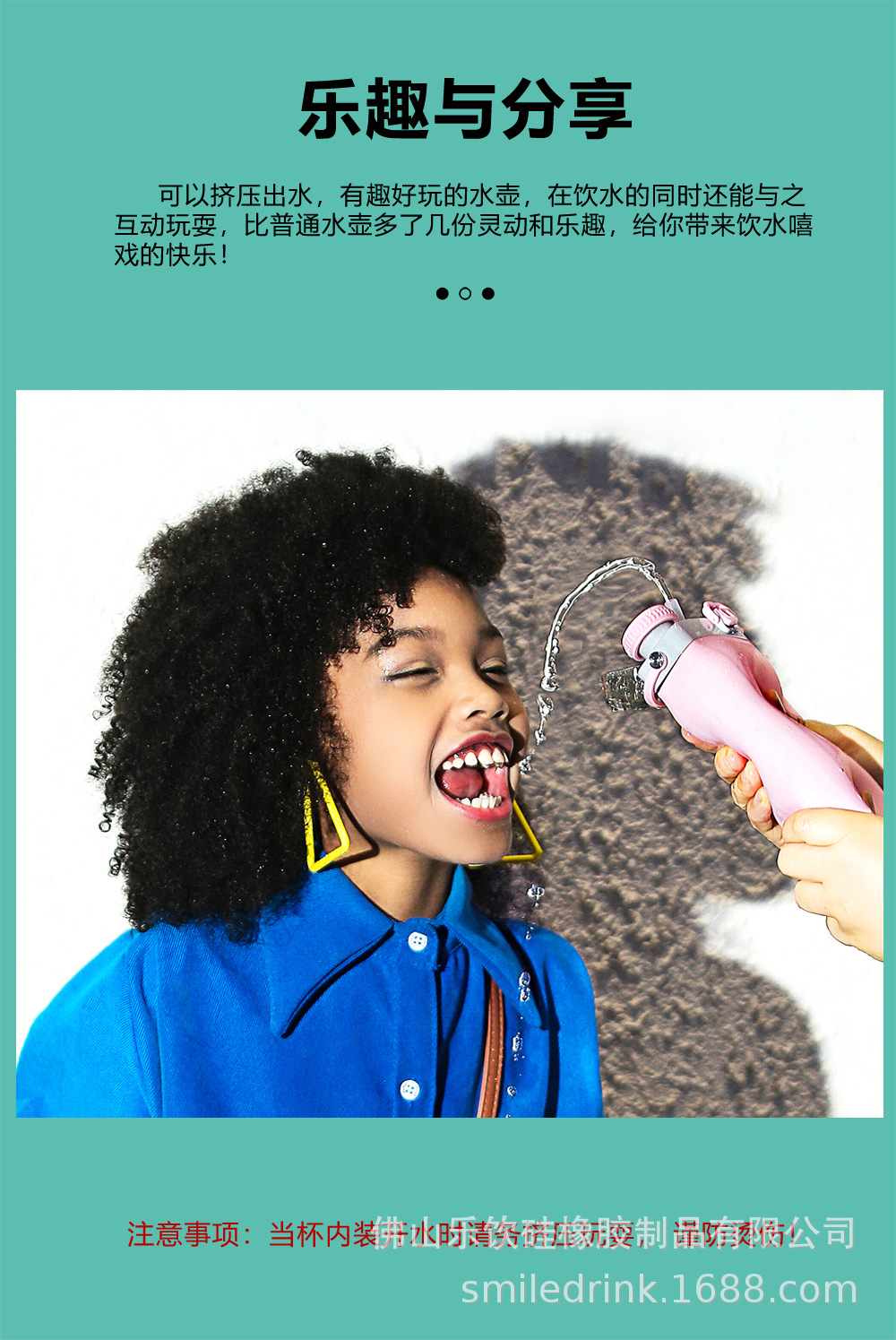6.【娱乐嬉戏】可以挤压出水,有趣好玩的水壶。在饮水的同时还能与之互动玩耍,比普通水壶多了几份灵动和乐趣,给你带来饮水嘻戏的快乐!