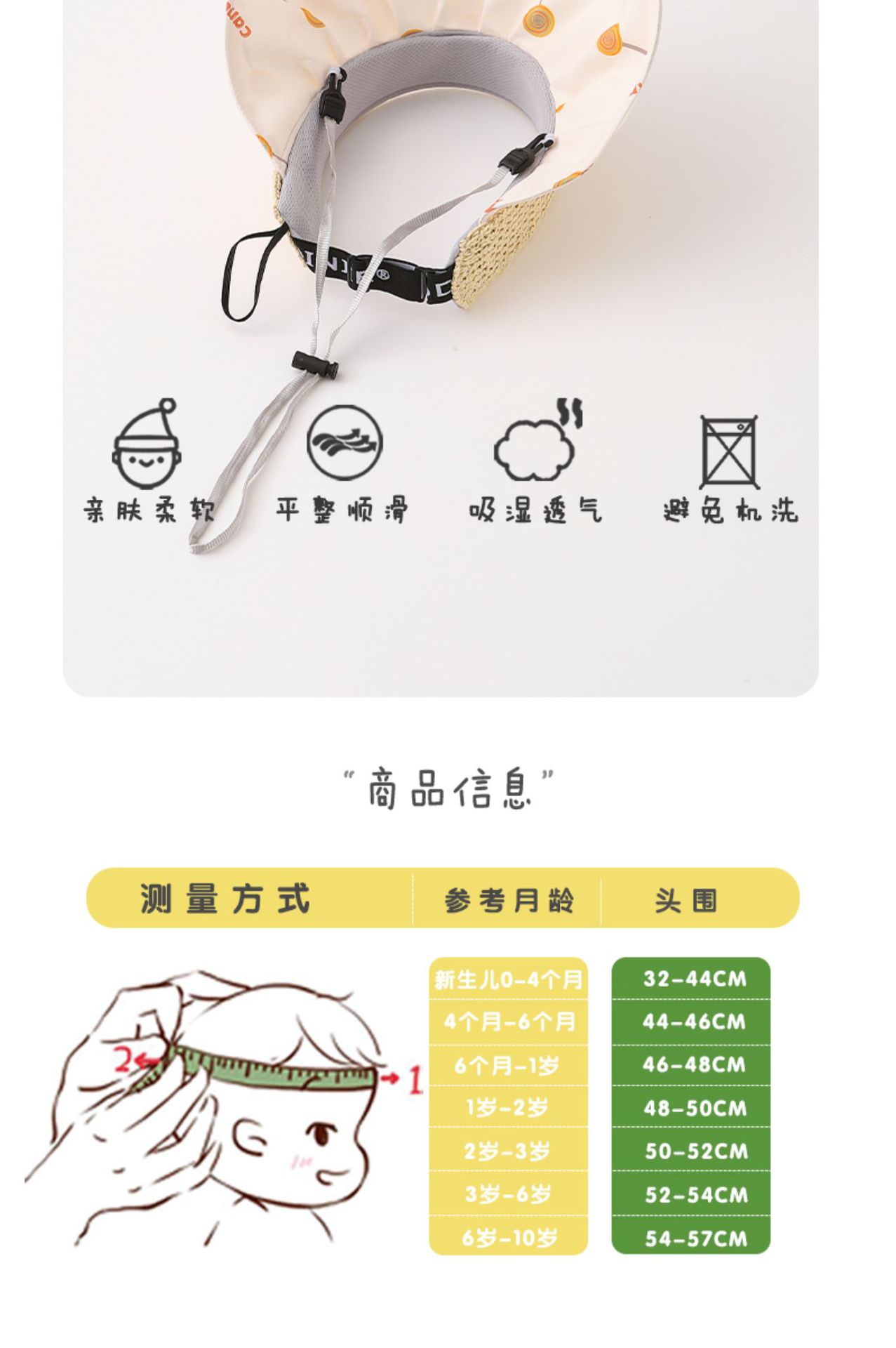 • 모자 둘레 48-54cm 착용 가능 (권장 연령 1-4 세)-위의 옵션 참조