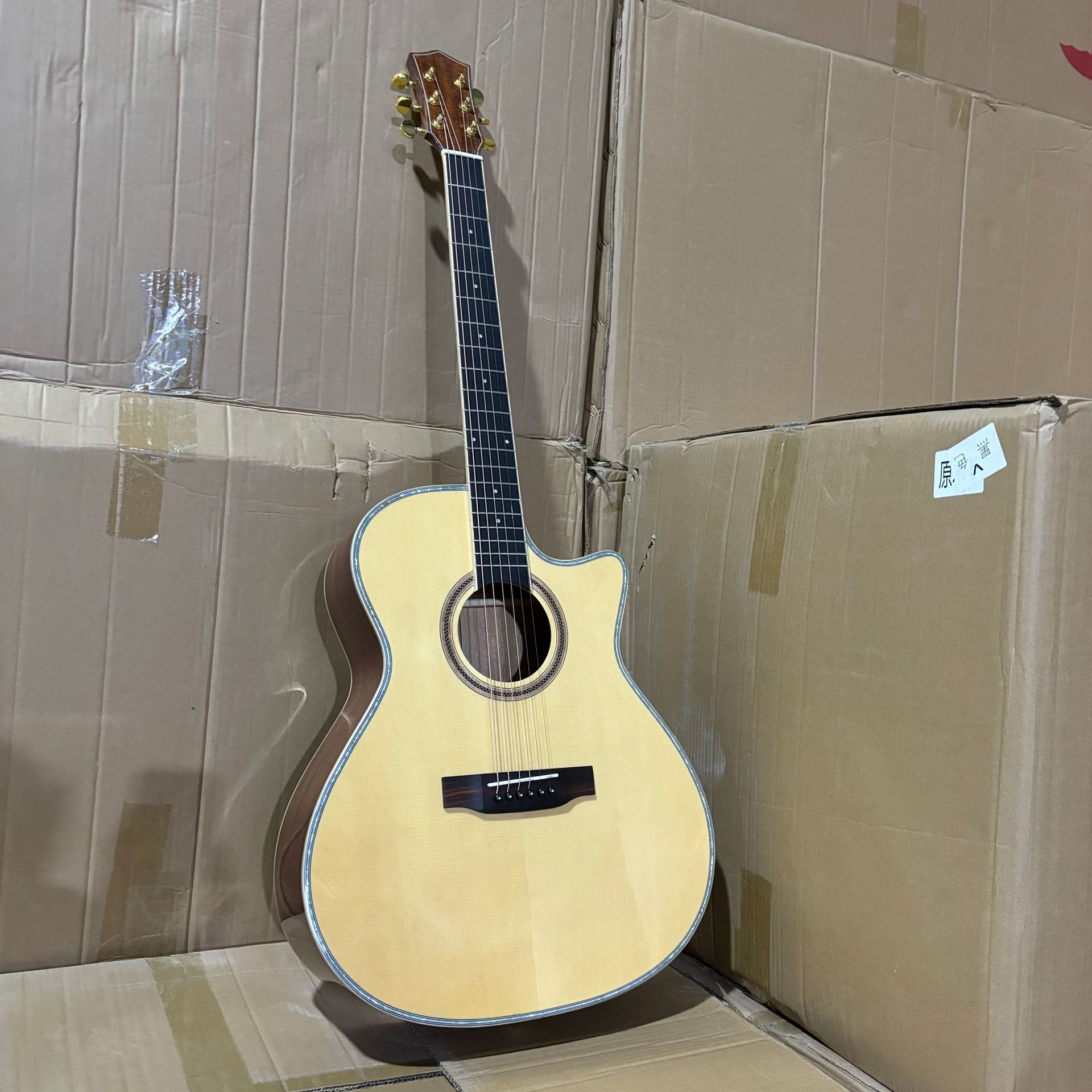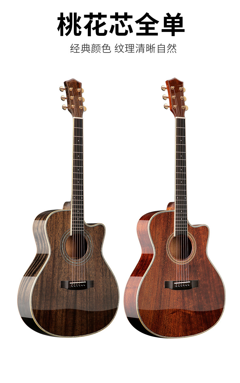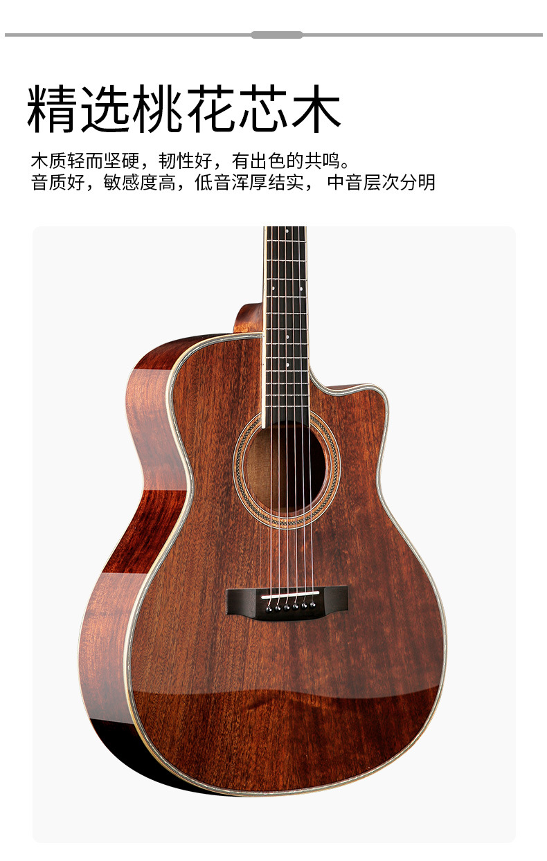 40 인치 GA 풀 싱글 기타 41 인치 DC 풀 복숭아 코어 구름 복숭아 가방 단단한 나무 옆 입 둥근 꽃 상감 나무를 설치할 수 있습니다 전기 상자