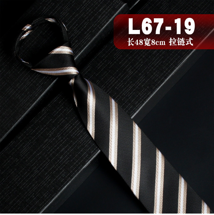 포맷웨어 비즈니스 지퍼 넥타이 남성용 8cm 레트로 캐주얼 영국 결혼식 직업 작업 스트라이프 게으른 매듭-무료스토어 가기