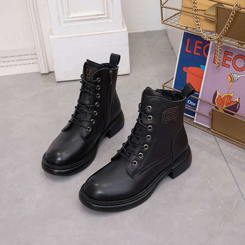 새로운 영국 퍼스트 레이어 소가죽 모든 매치 마틴 부츠 여성용 겨울 따뜻한 면 신발 어머니 신발 정품 가죽 여성용 면 부츠스토어 가기