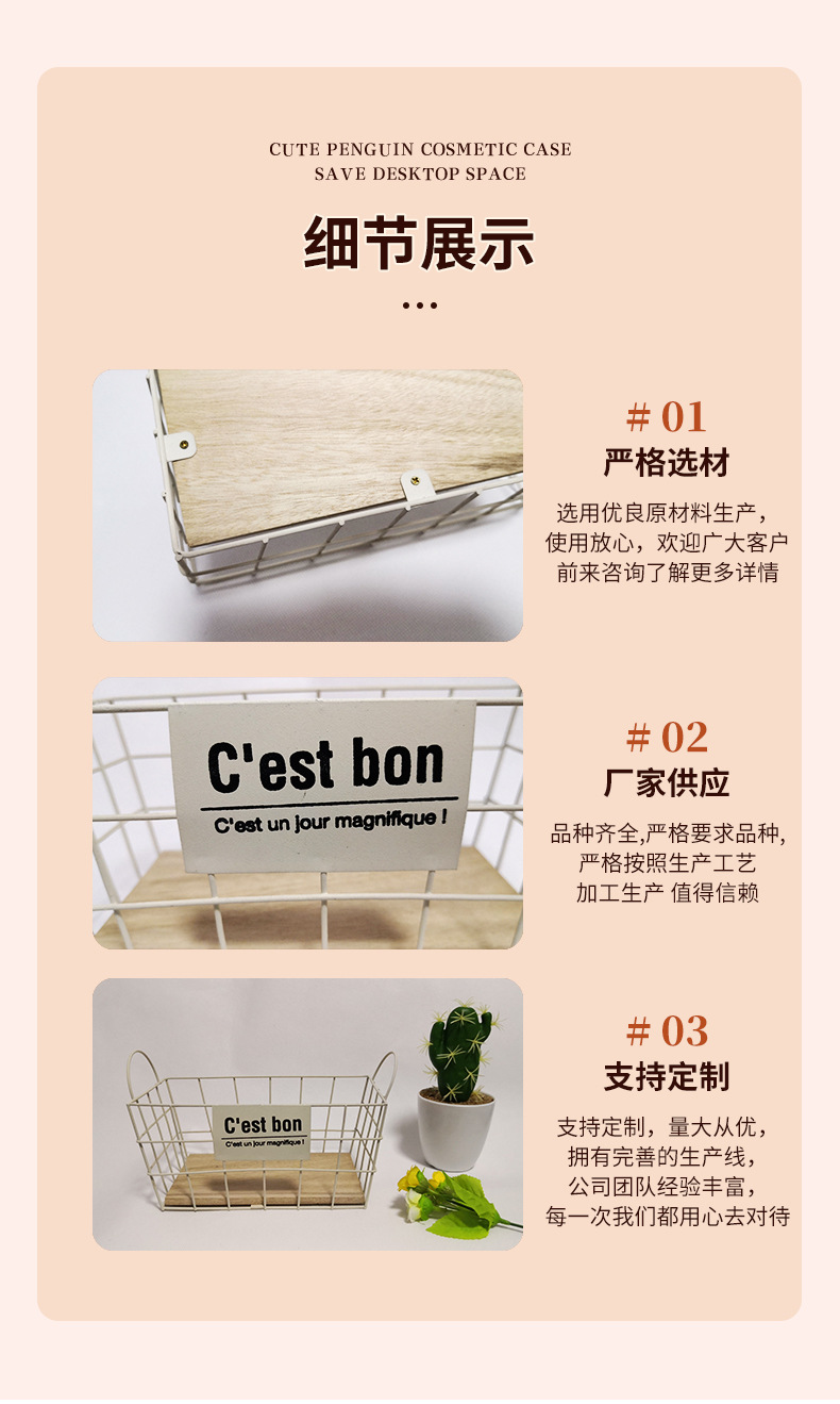 일본과 한국 스타일의 금속 수납 바구니, 데스크탑 수납 바구니, 수납 바구니, 탁상용 화장품 수납 선반, 정리 및 수납스토어 가기