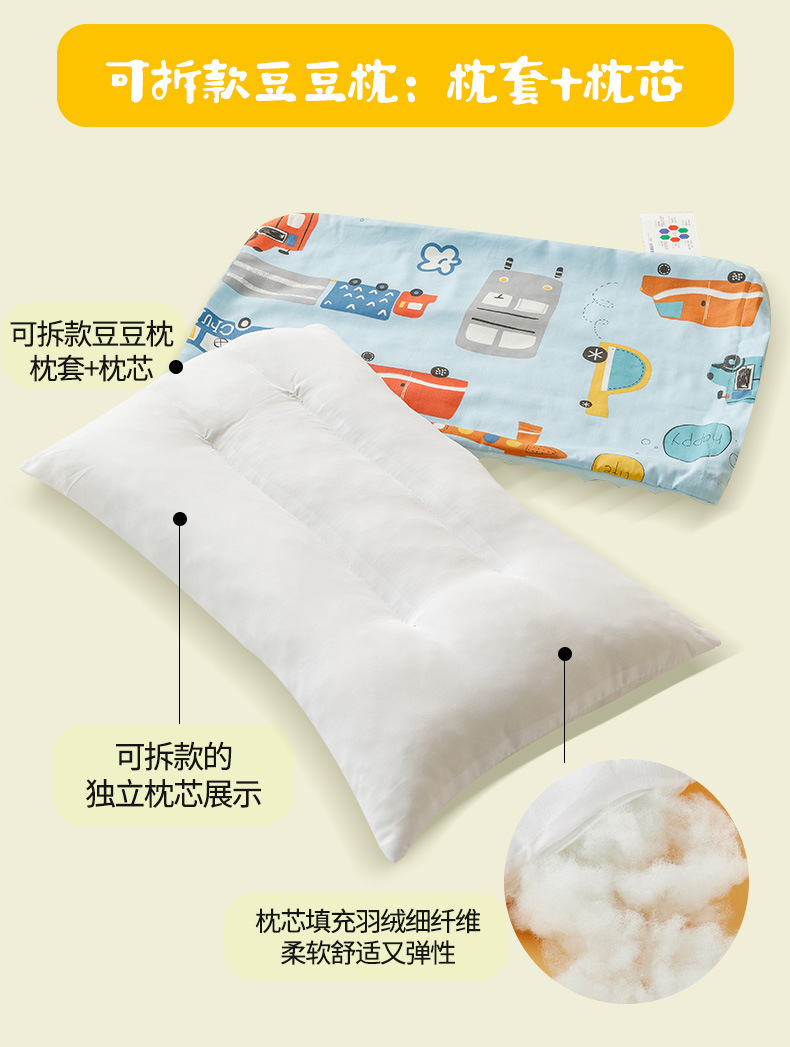 아기 진정 콩 베개 탈착식 및 빨 수있는 어린이 빨 수있는 작은 베개 순수한면 유치원 학생 낮잠 베개스토어 가기