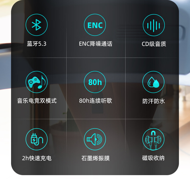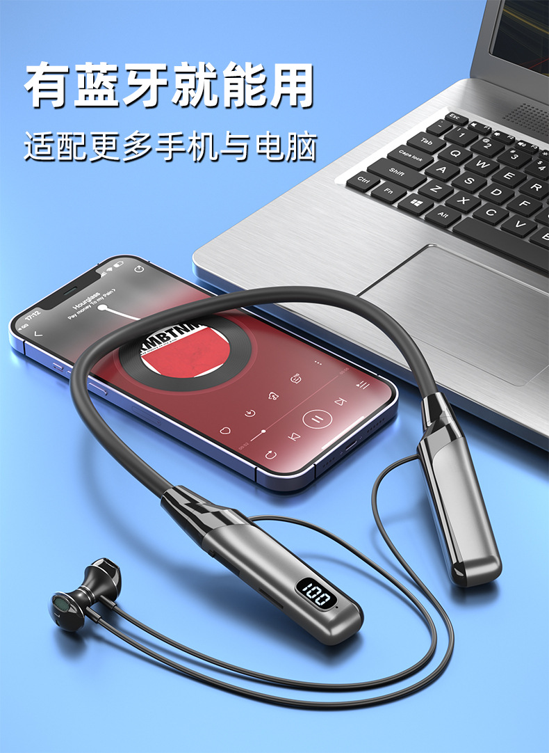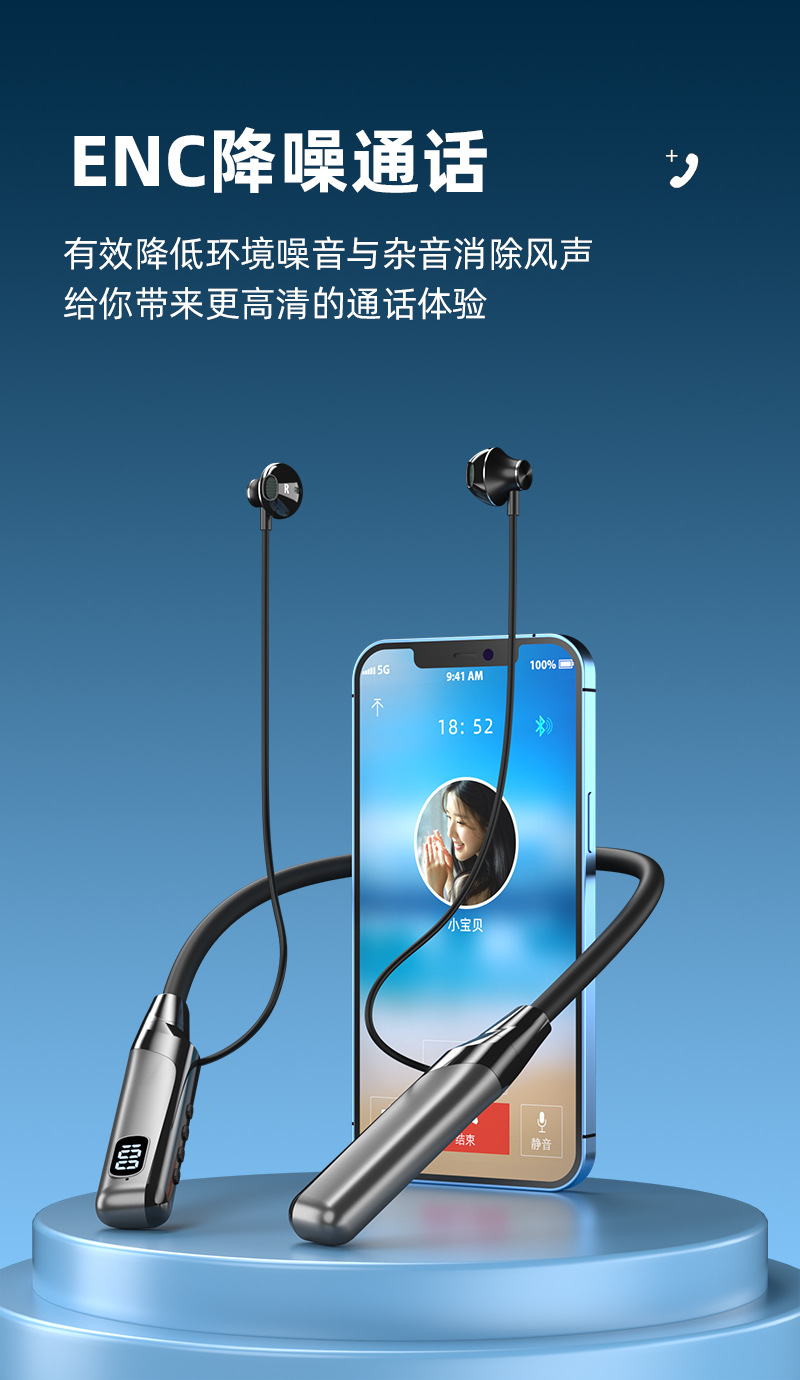 블루투스 이어폰, 목걸이형, 매우 긴 배터리 수명, 소음 감소, 애플 및 화웨이 5.3 무선 이어버드 스포츠 이어폰에 적합스토어 가기