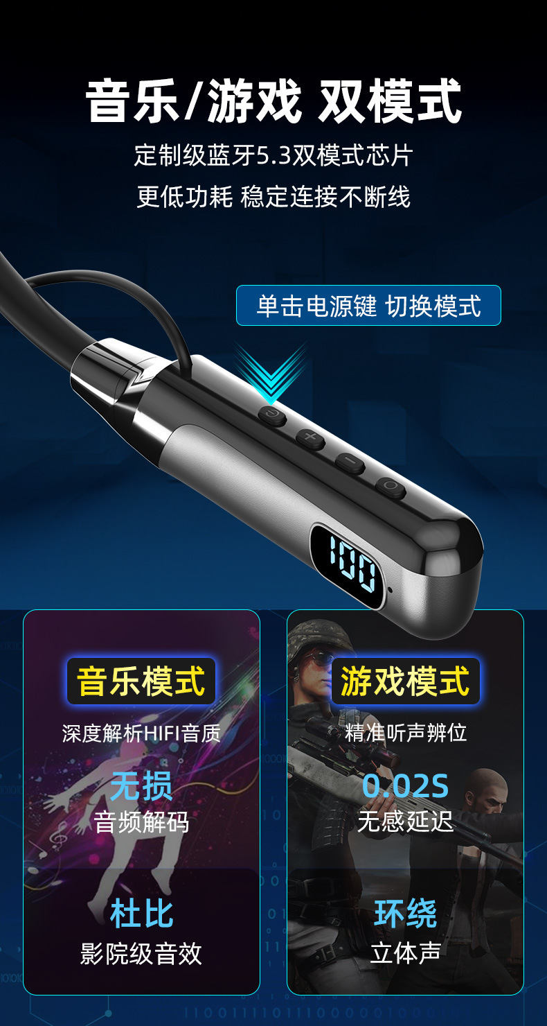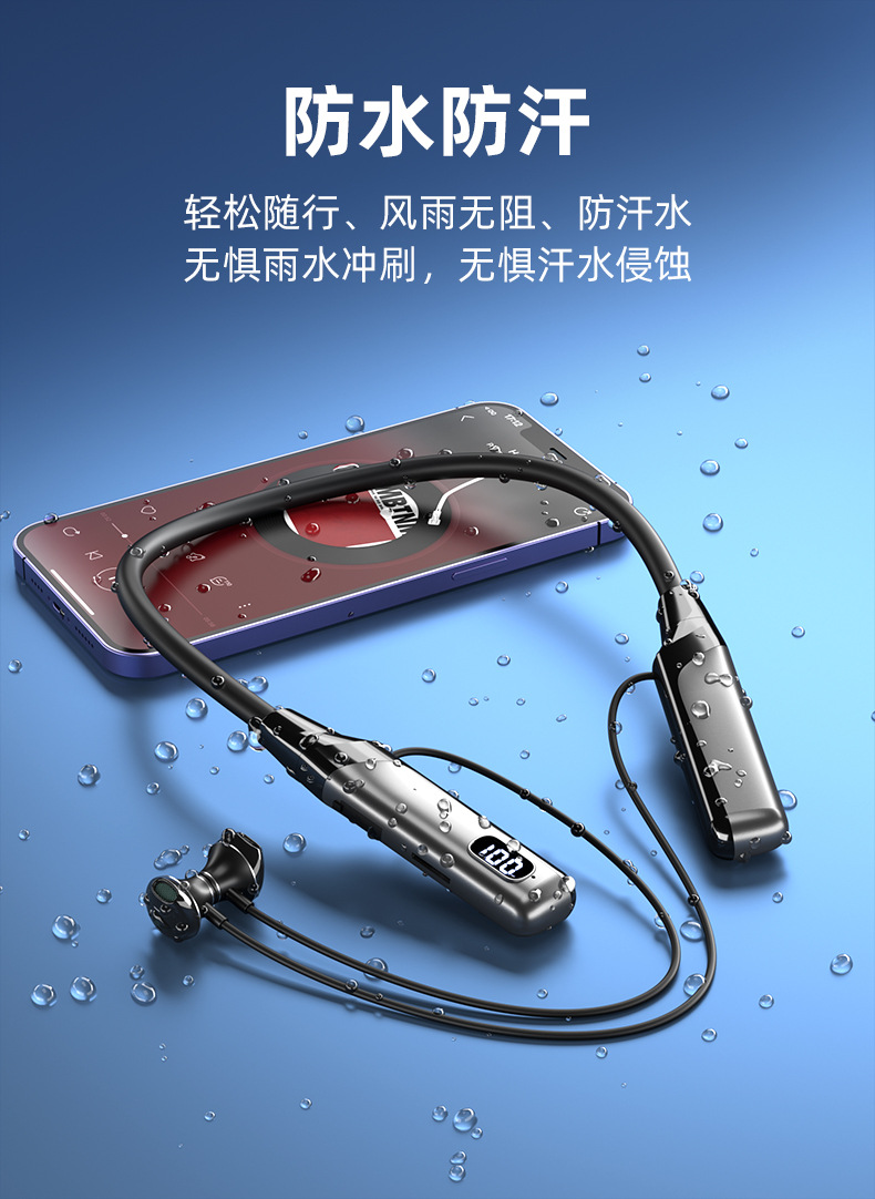블루투스 이어폰, 목걸이형, 매우 긴 배터리 수명, 소음 감소, 애플 및 화웨이 5.3 무선 이어버드 스포츠 이어폰에 적합
