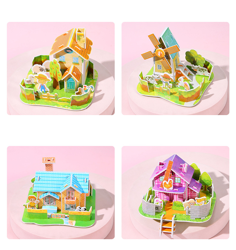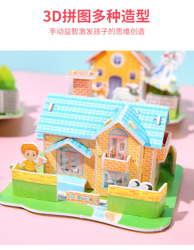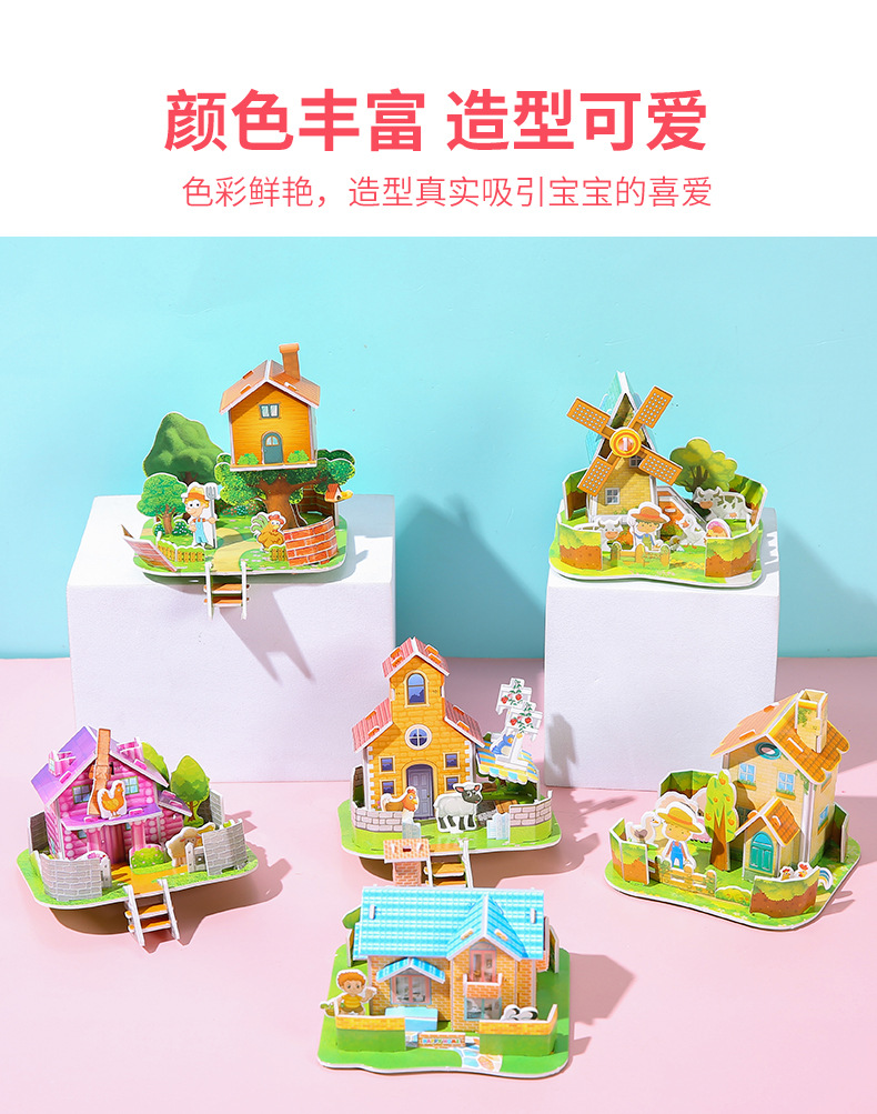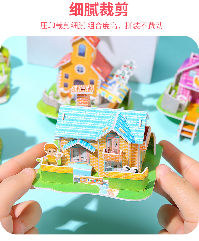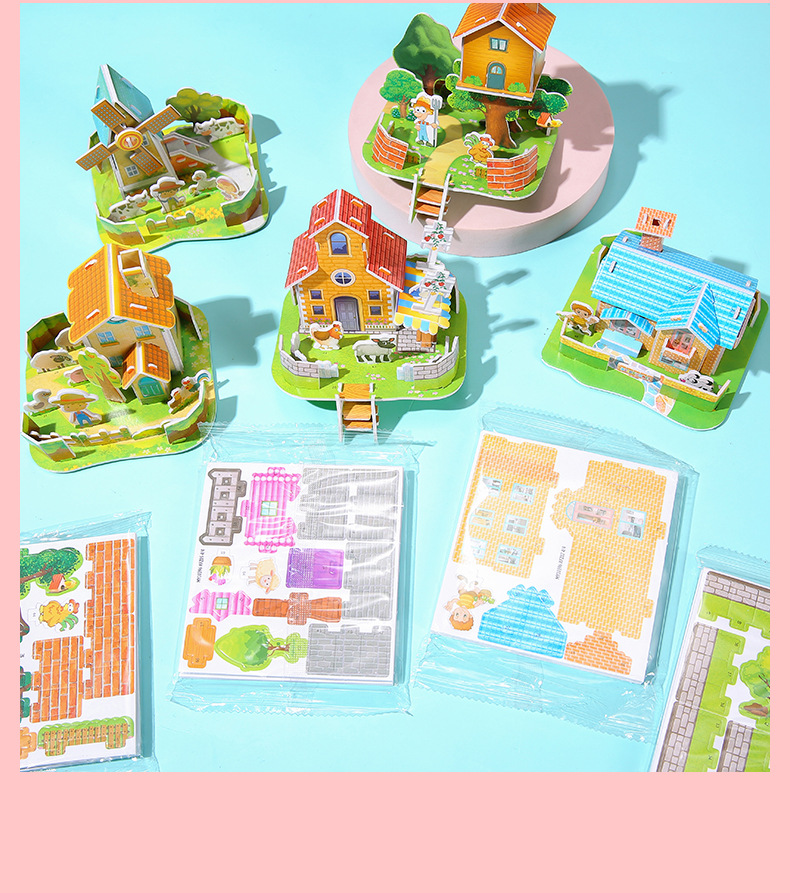 유치원 어린이 수제 교육 완구 종이 3 차원 퍼즐 빌딩 블록 DIY 오두막 창조적 인 건물 모델