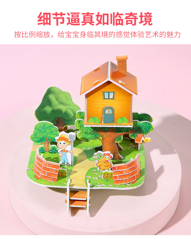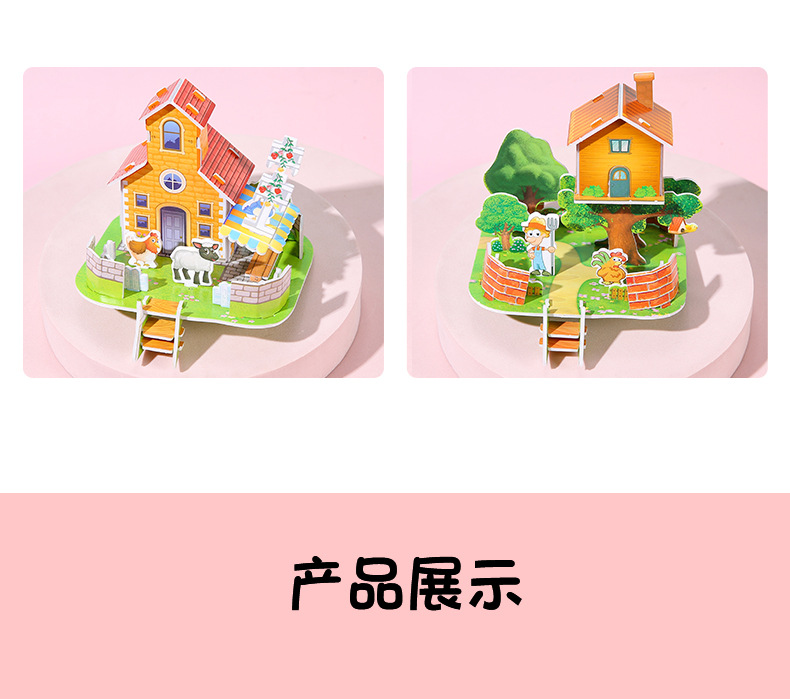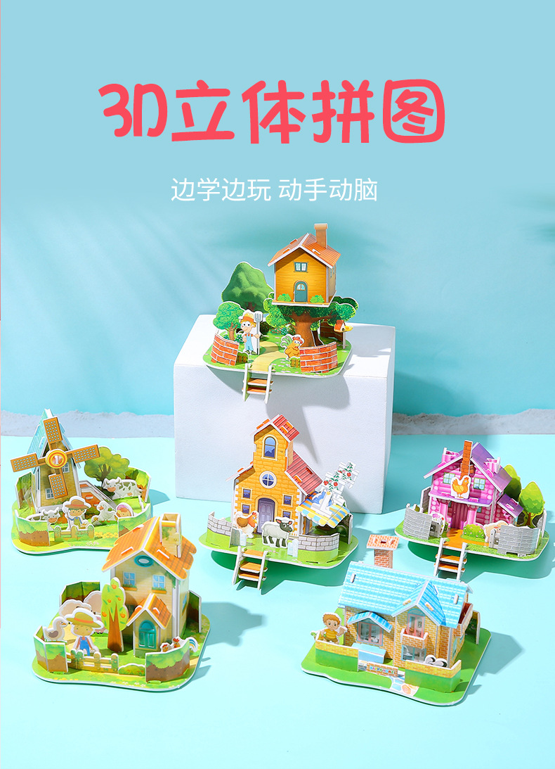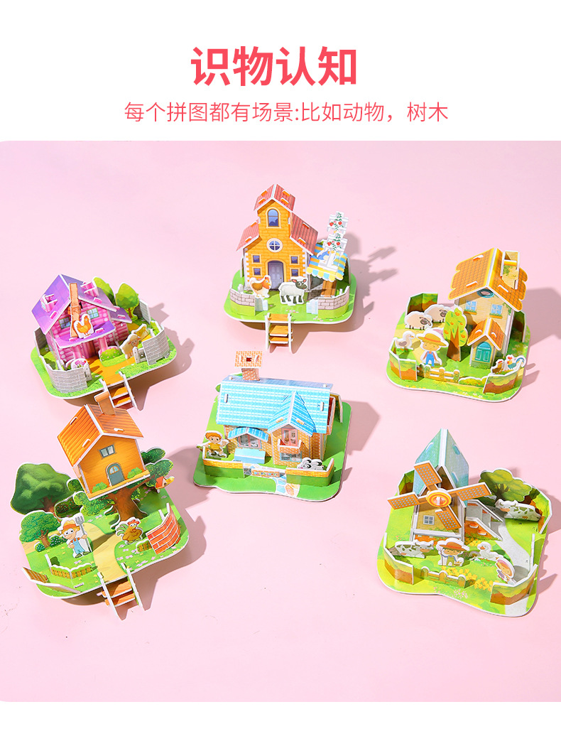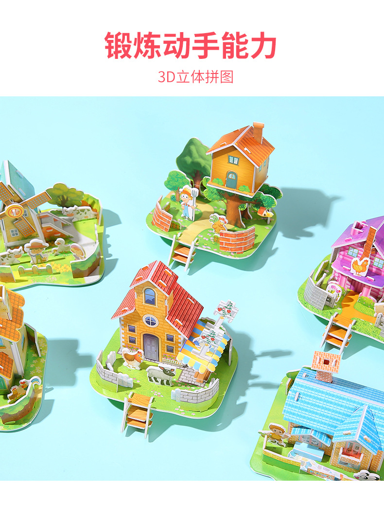 유치원 어린이 수제 교육 완구 종이 3 차원 퍼즐 빌딩 블록 DIY 오두막 창조적 인 건물 모델