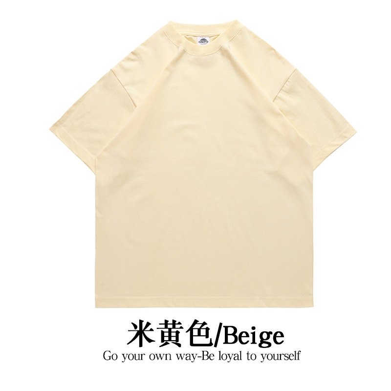 유럽 사이즈 260g 코마면 반팔 남성 티셔츠 루즈핏 트렌디 브랜드 드롭숄더 남성복 다용도 라운드넥 티셔츠 남성 이너웨어스토어 가기