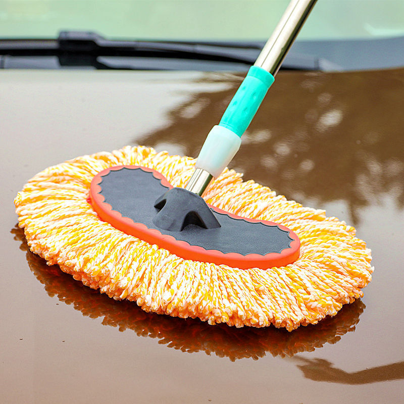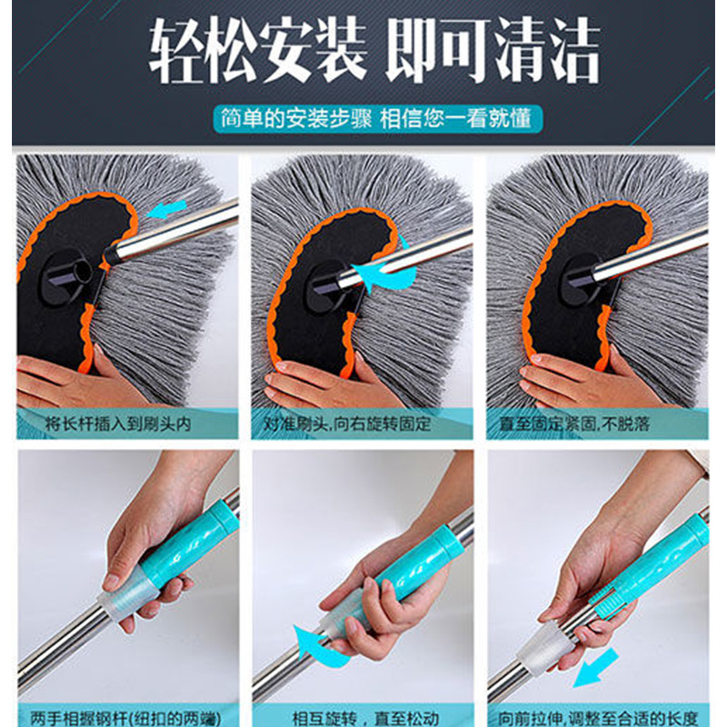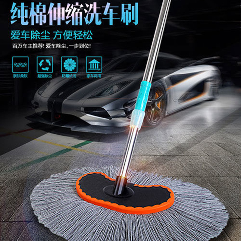 두꺼운 회색 면사 우유 실크 세차용 걸레, 자동차 청소용 스테인레스 스틸 텔레스코픽 봉, 자동차 세척용 브러시스토어 가기