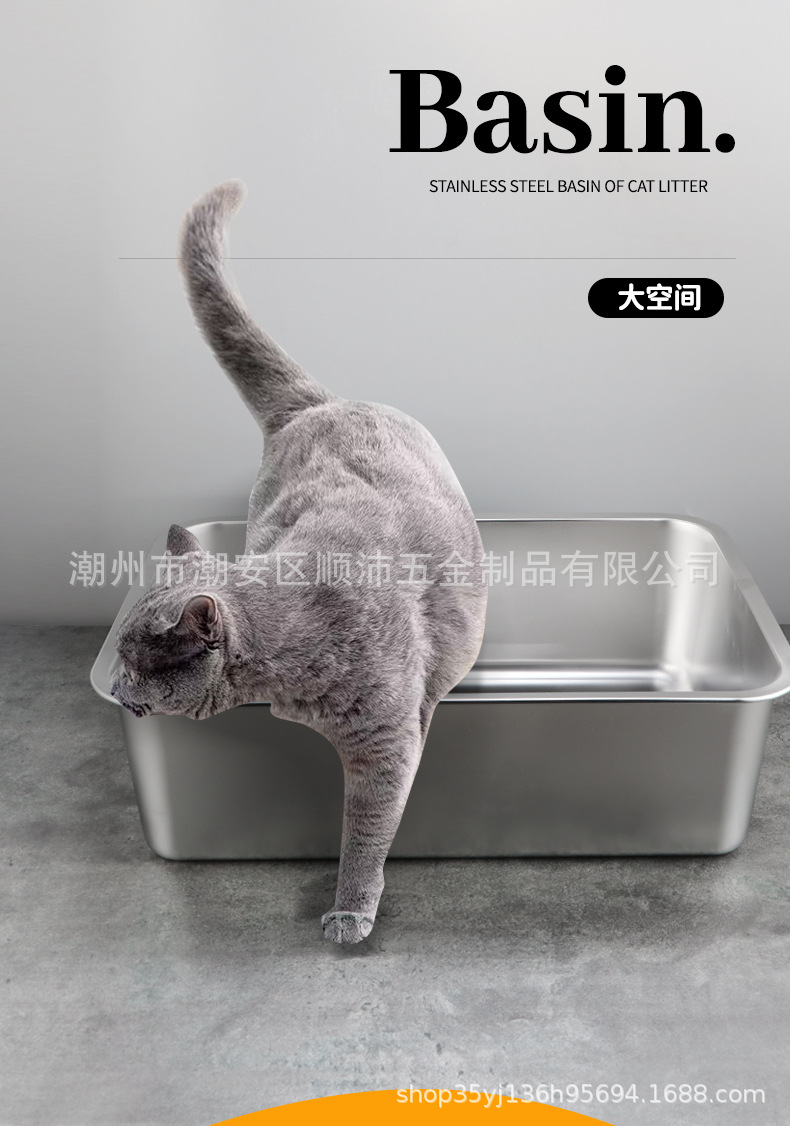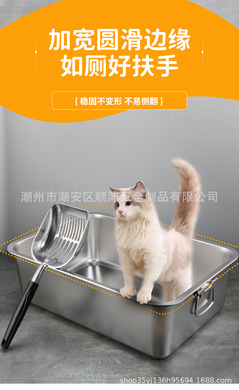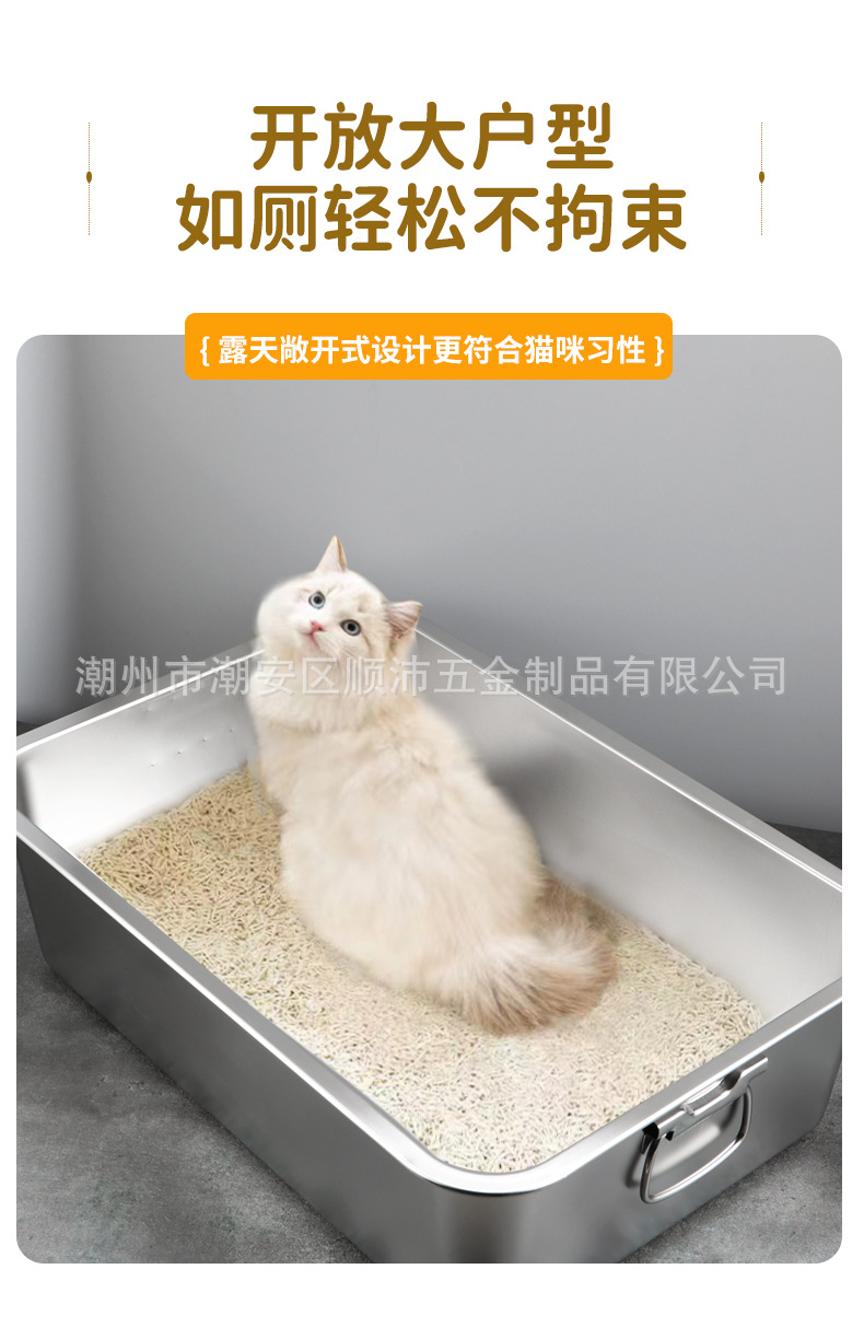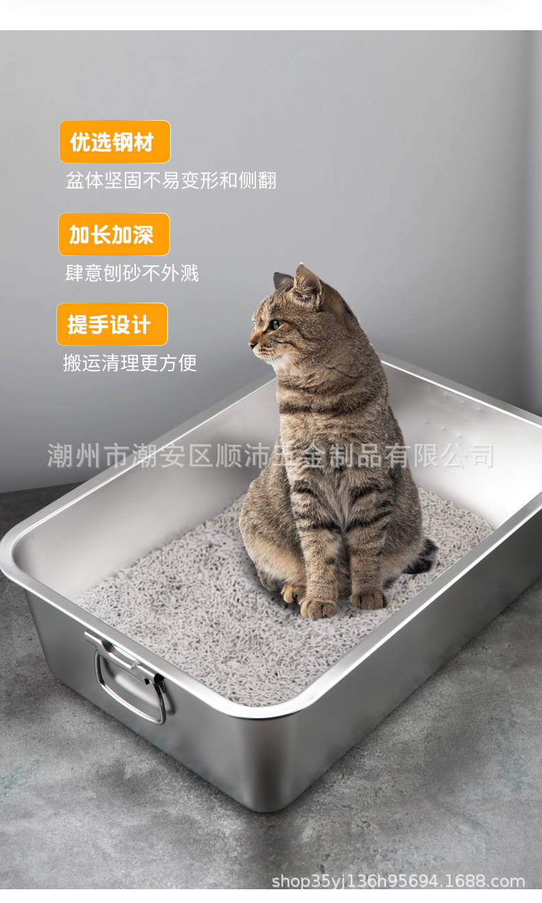 국경 간 고양이 쓰레기 상자 안티 스플래시 오버 사이즈 반 폐쇄 고양이 화장실 핸들 도매 심화 스테인레스 스틸 쓰레기 상자스토어 가기