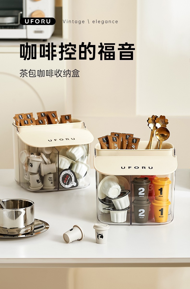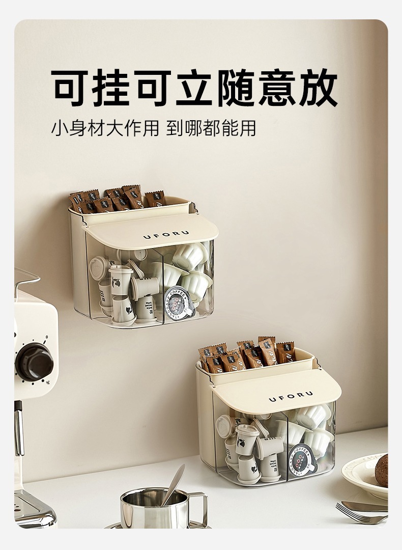 간단한 커피 보관함 데스크탑 캡슐 보관함 뚜껑 방진 다기능 분리형 티백 보관함스토어 가기