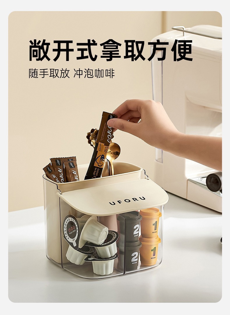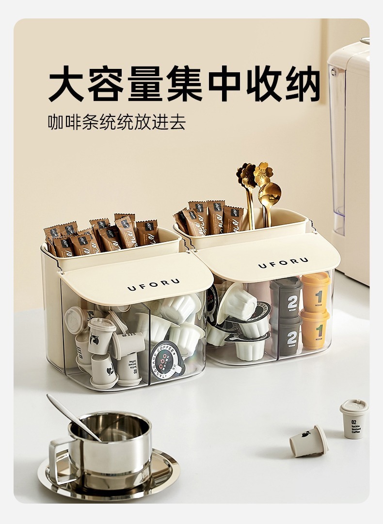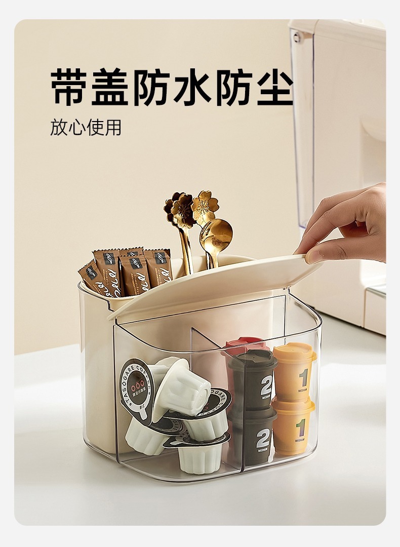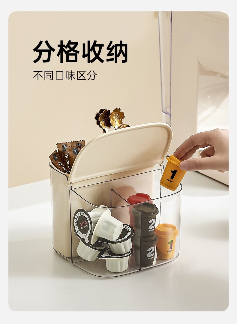 간단한 커피 보관함 데스크탑 캡슐 보관함 뚜껑 방진 다기능 분리형 티백 보관함