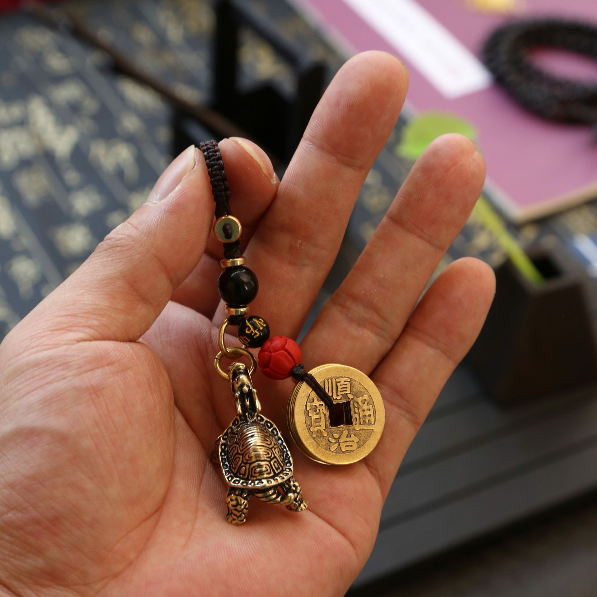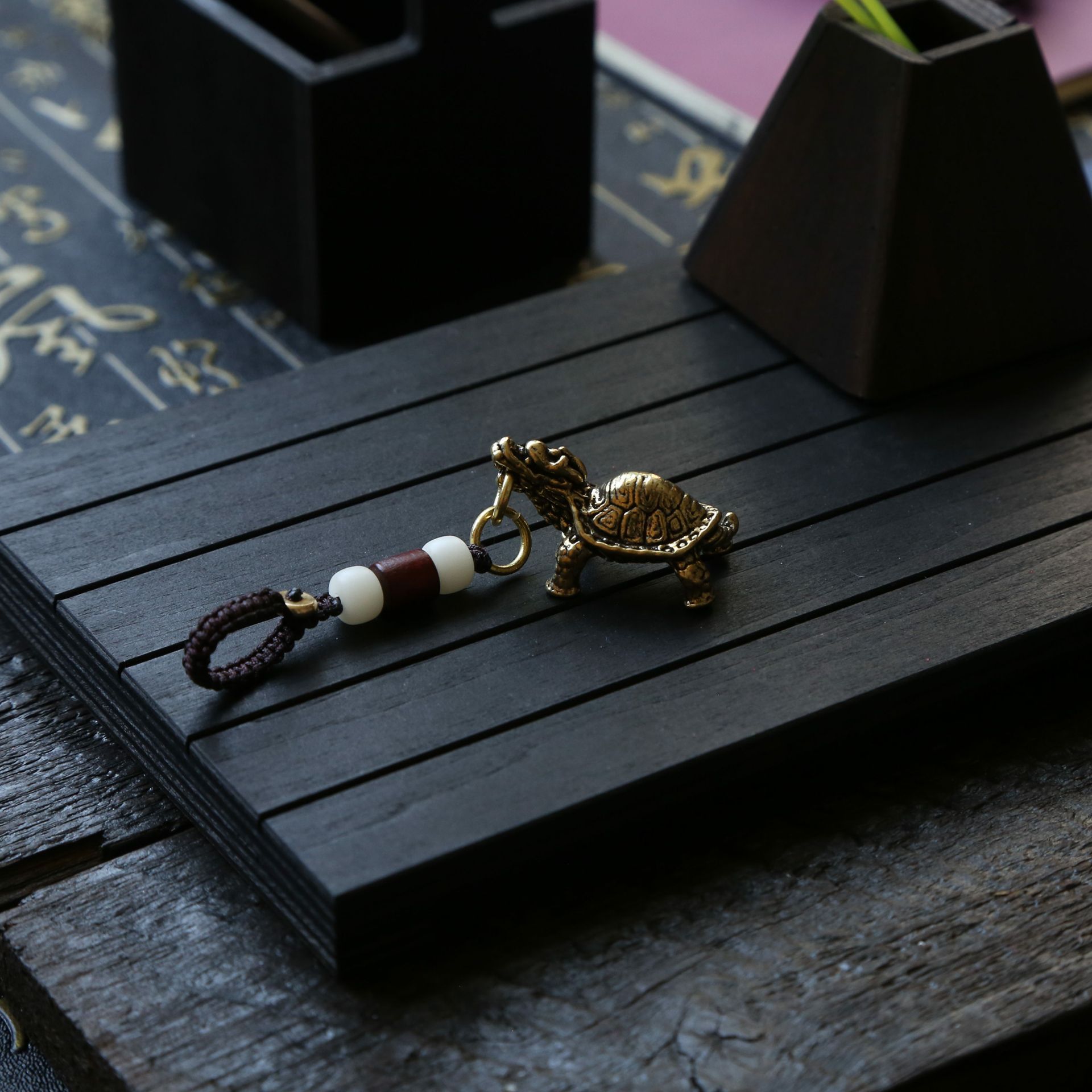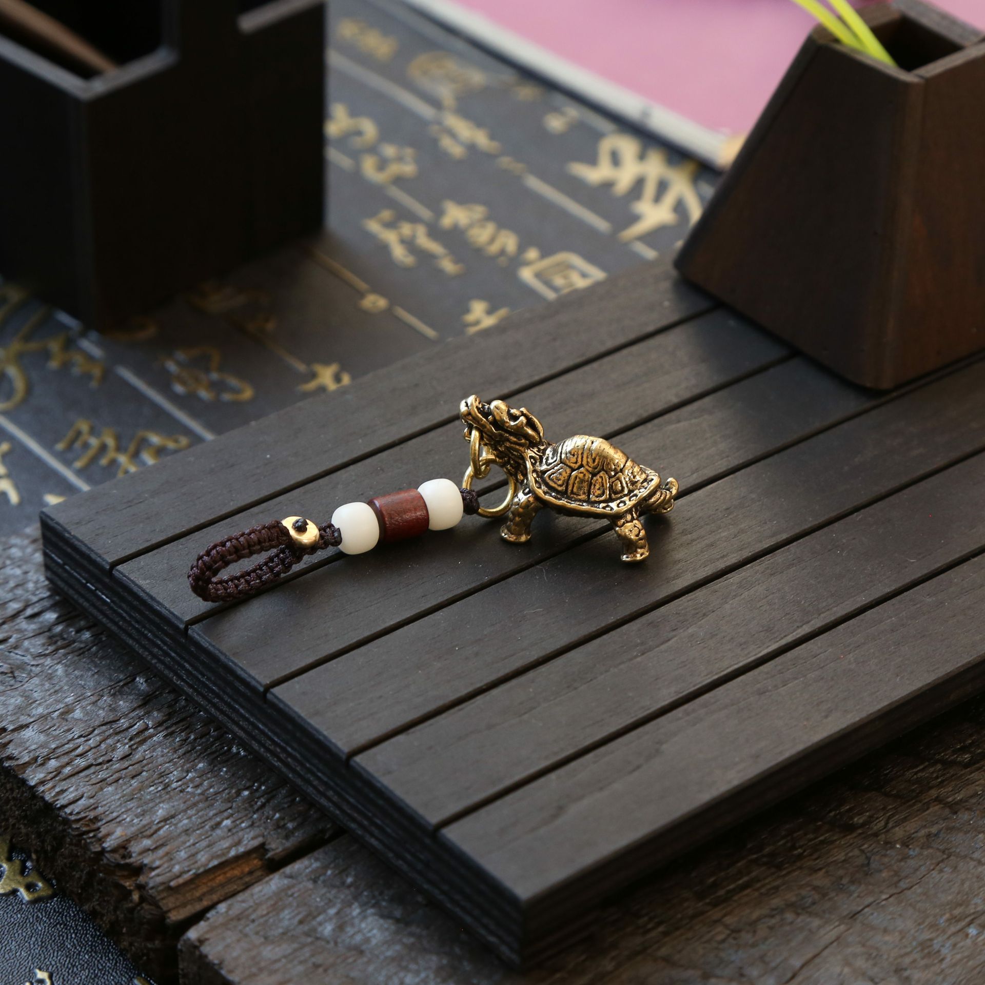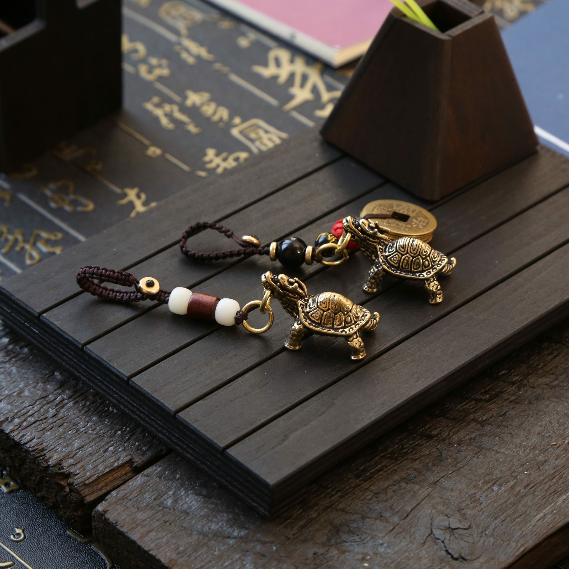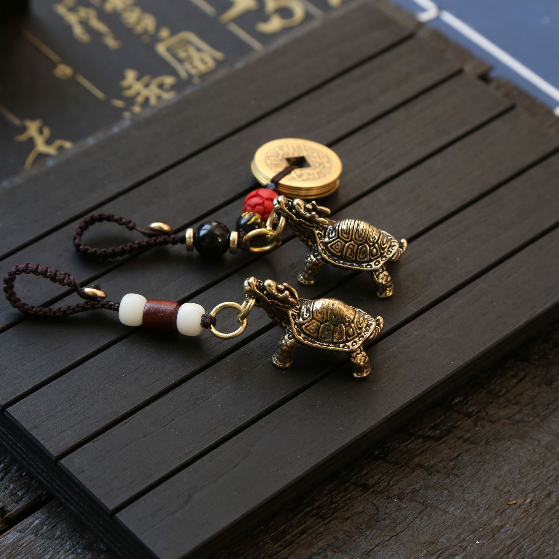 이우 상품 제조 업체 공급 황동 현무암 키 체인 레트로 드래곤 거북이 행운의 장식품 자동차 가방 펜던트스토어 가기