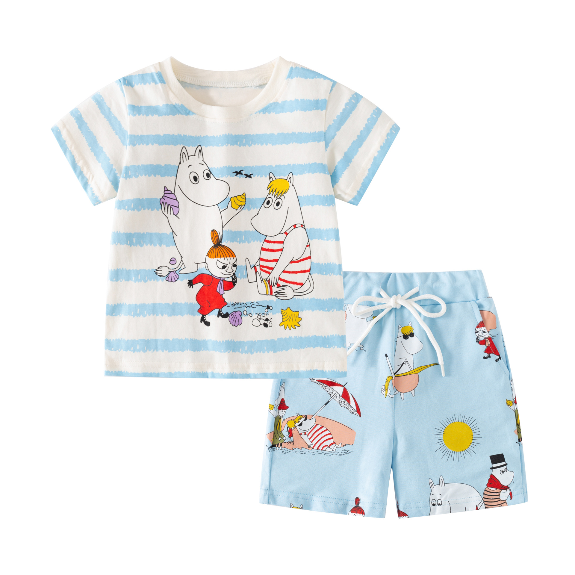 Littlebuddy 유럽과 미국 스타일의 반팔 어린이 세트 소년 2-7 세 면화 어린이 세트 머리 투피스 New스토어 가기