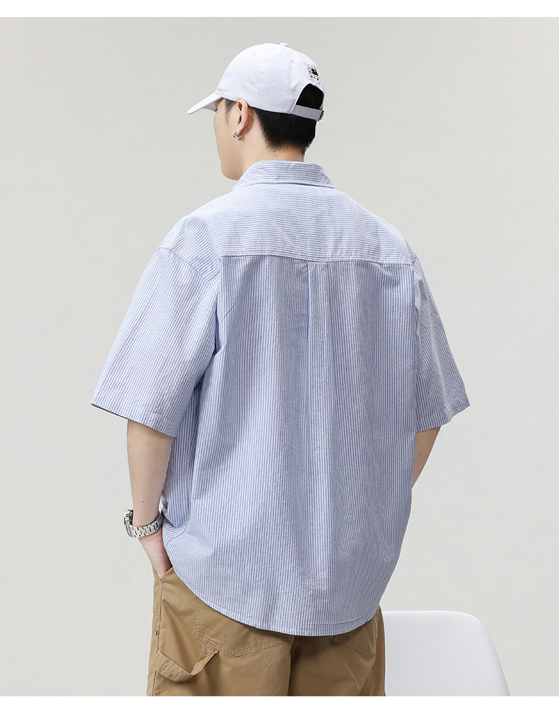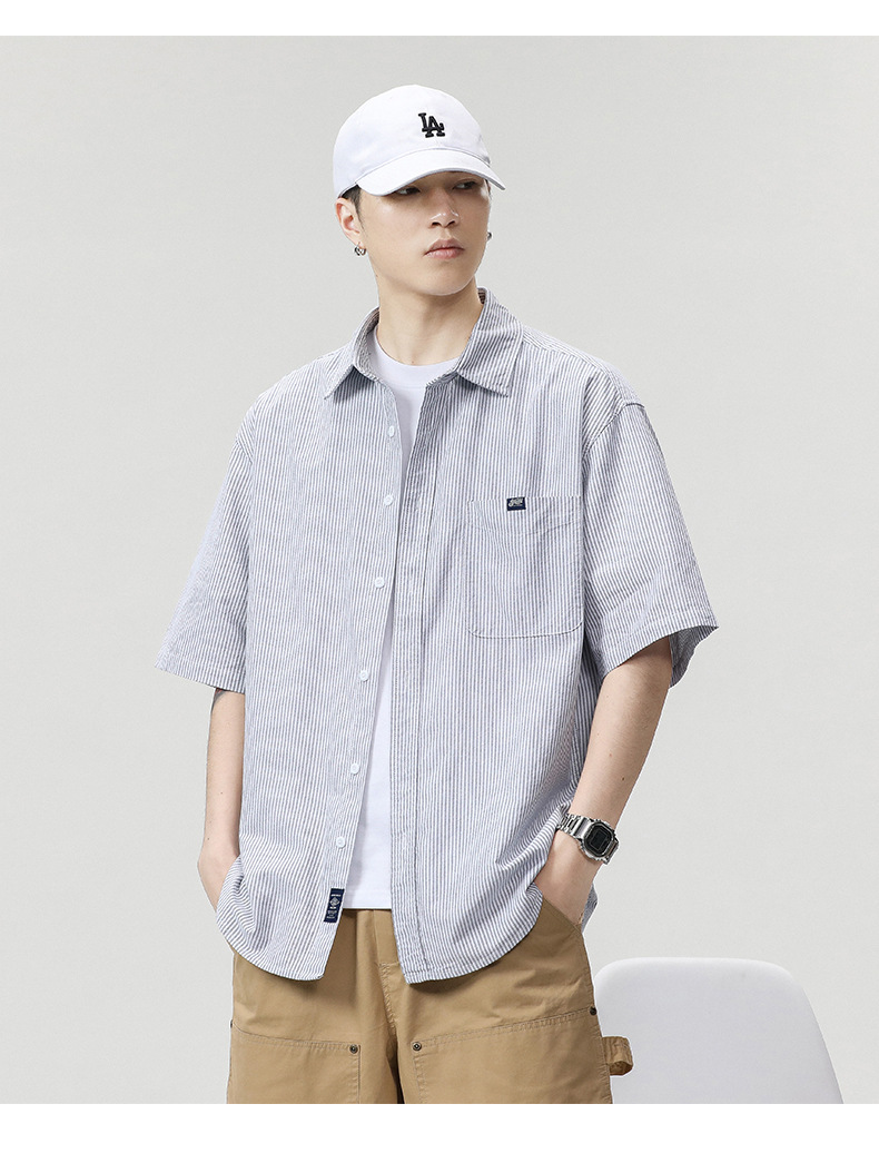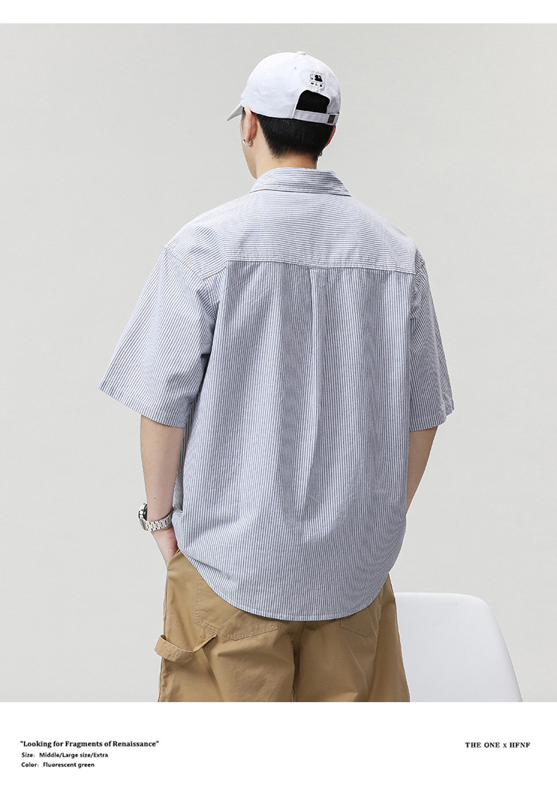 LKTM 남성용 # 일본 스트라이프 반팔 셔츠 남성용 여름 얇은 시티 보이 캐주얼 모든 매치 라펠 셔츠스토어 가기