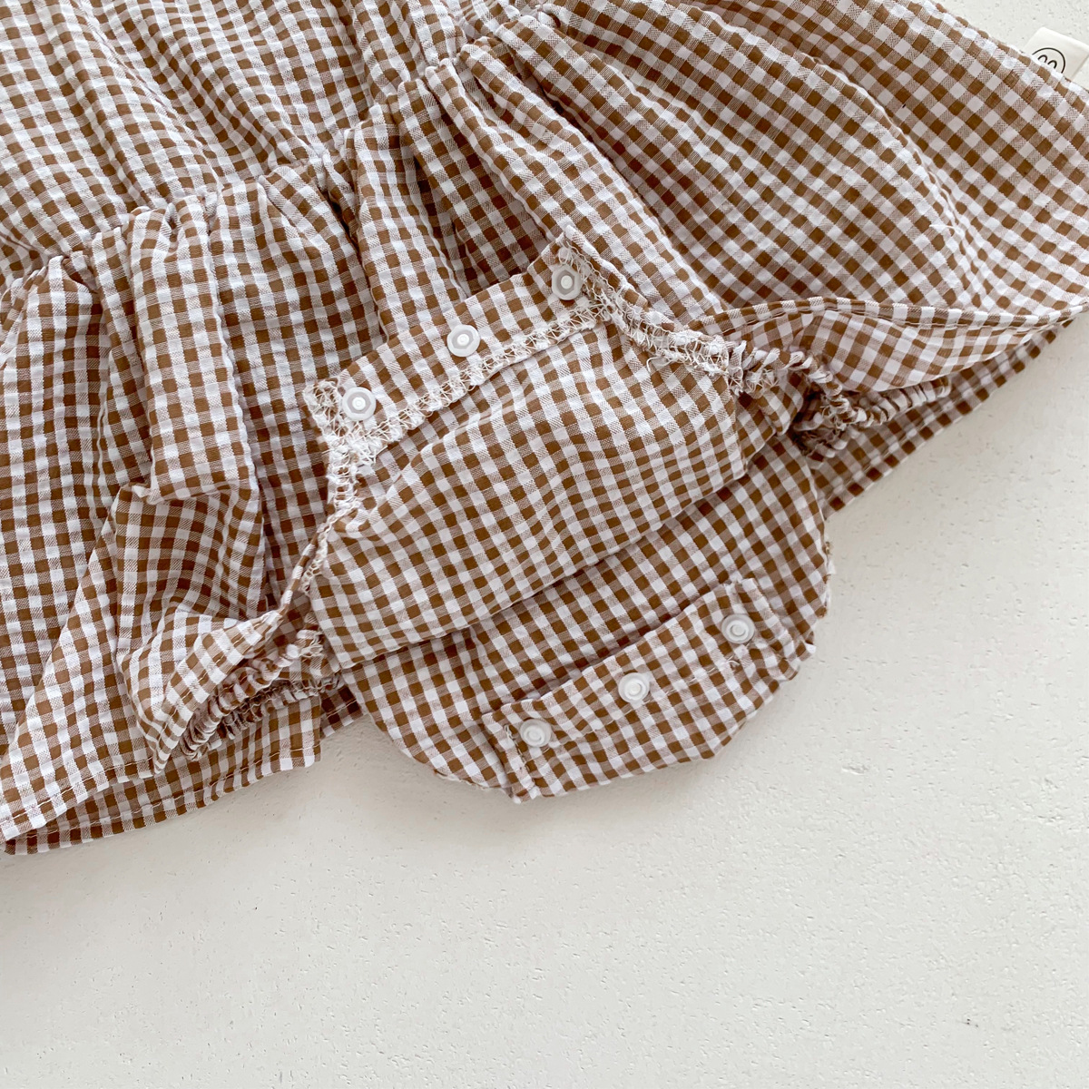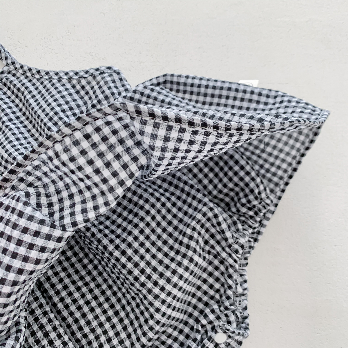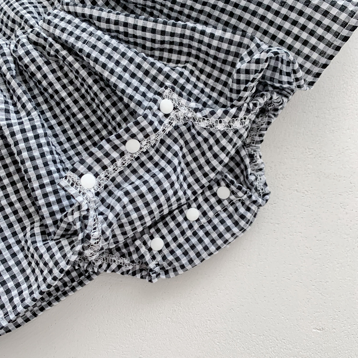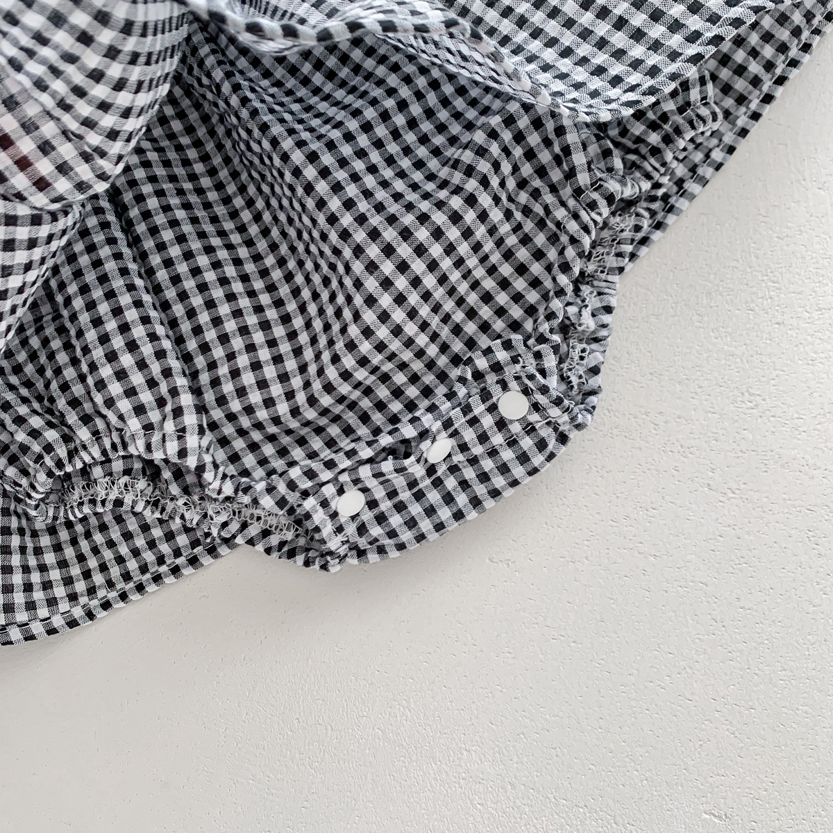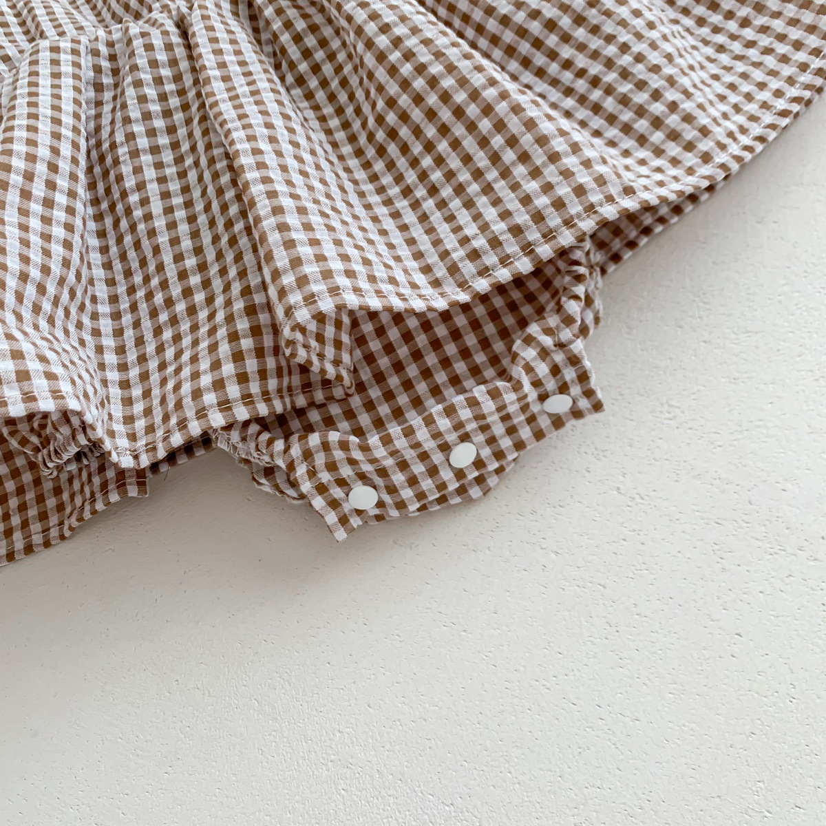 2025 여름 여아 민소매 바디수트, 영유아용 한국식 체크무늬 서스펜더 원피스, 모자 포함스토어 가기