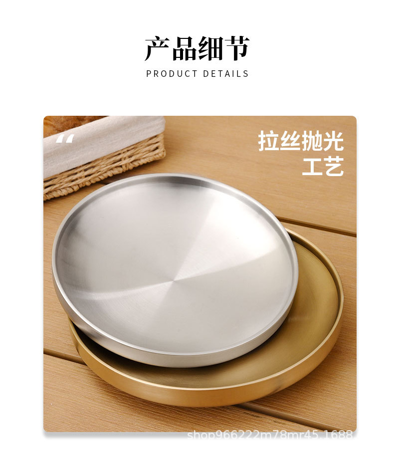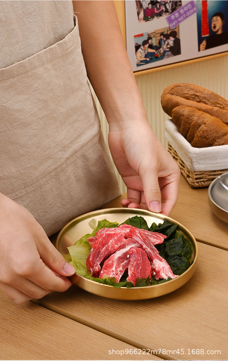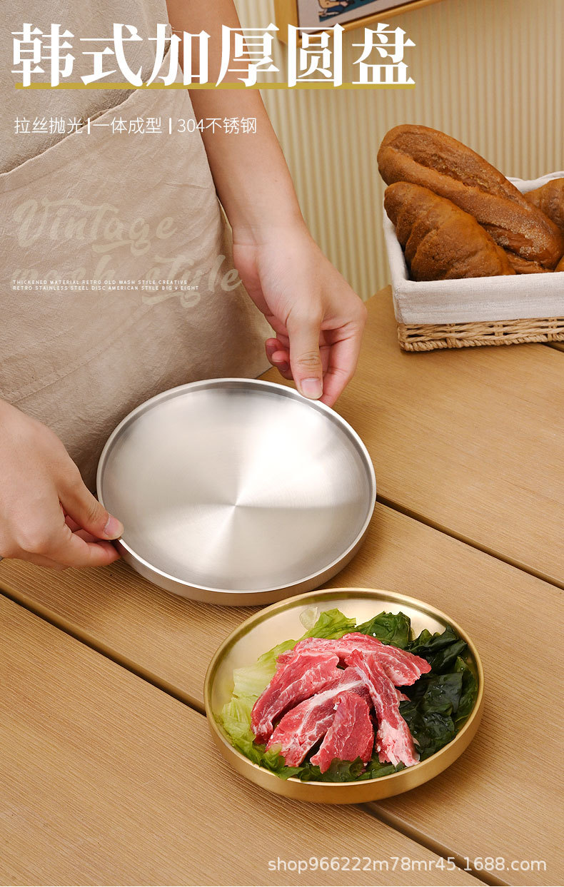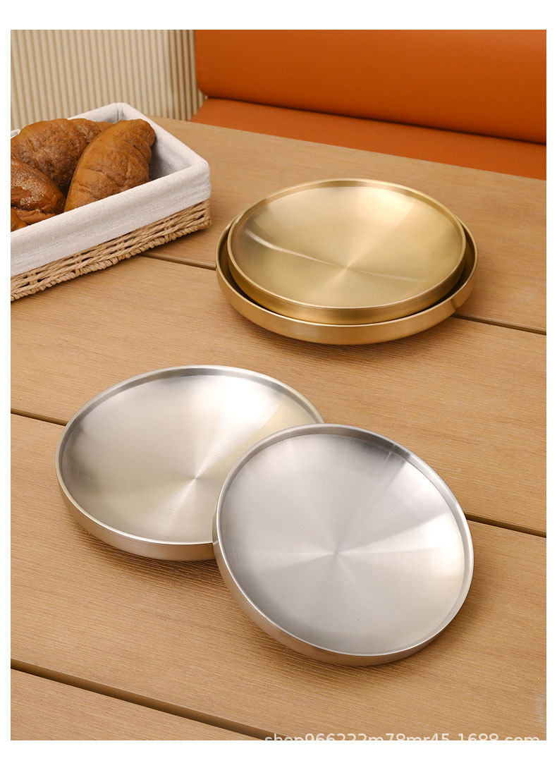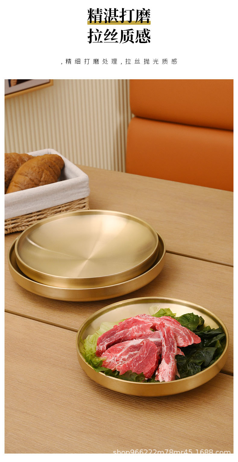 304 스테인레스 스틸 플레이트 이중층 단열 라운드 트레이 접시 상업 황금 바베큐 플레이트 한국식 바베큐 레스토랑 식기스토어 가기