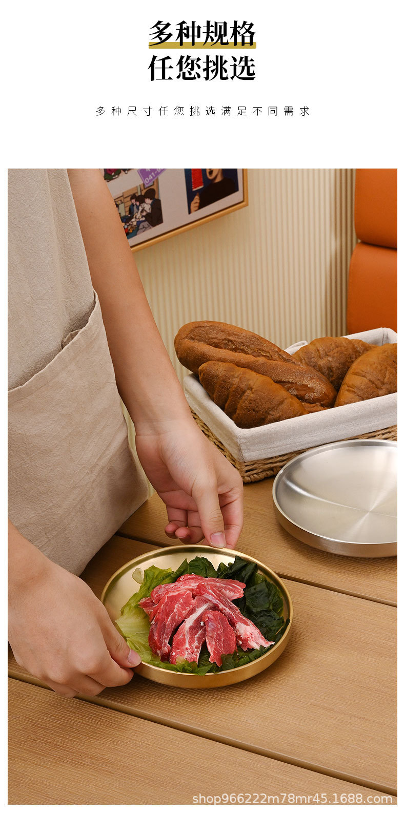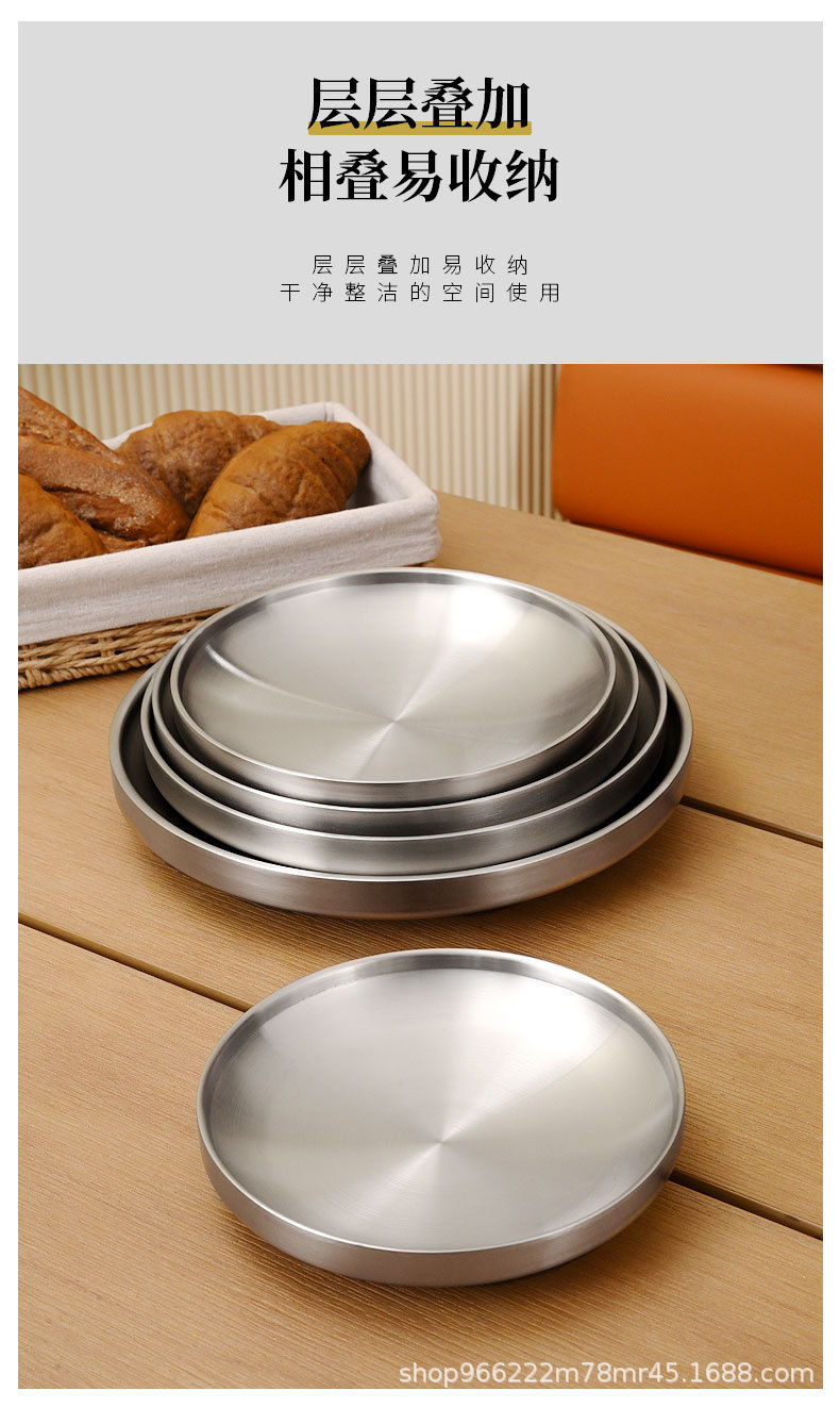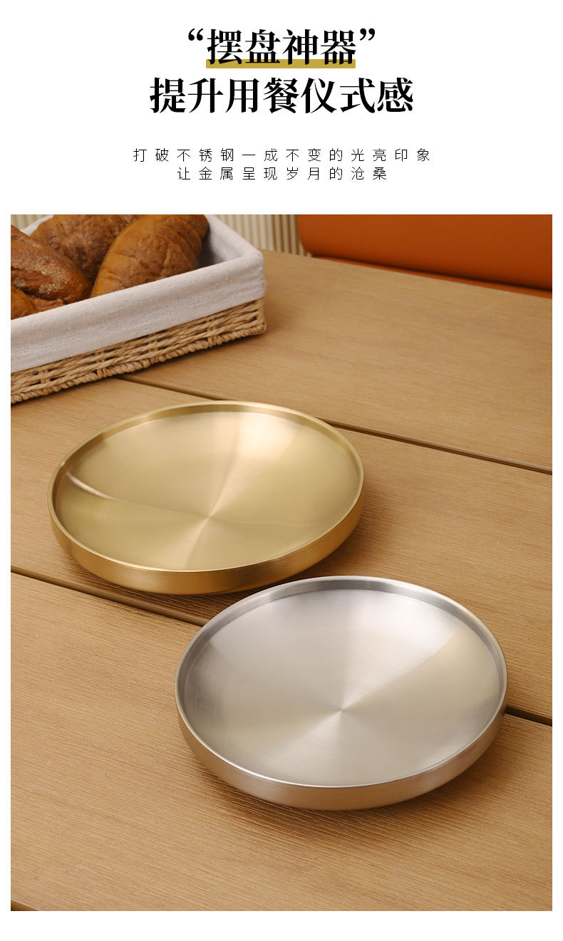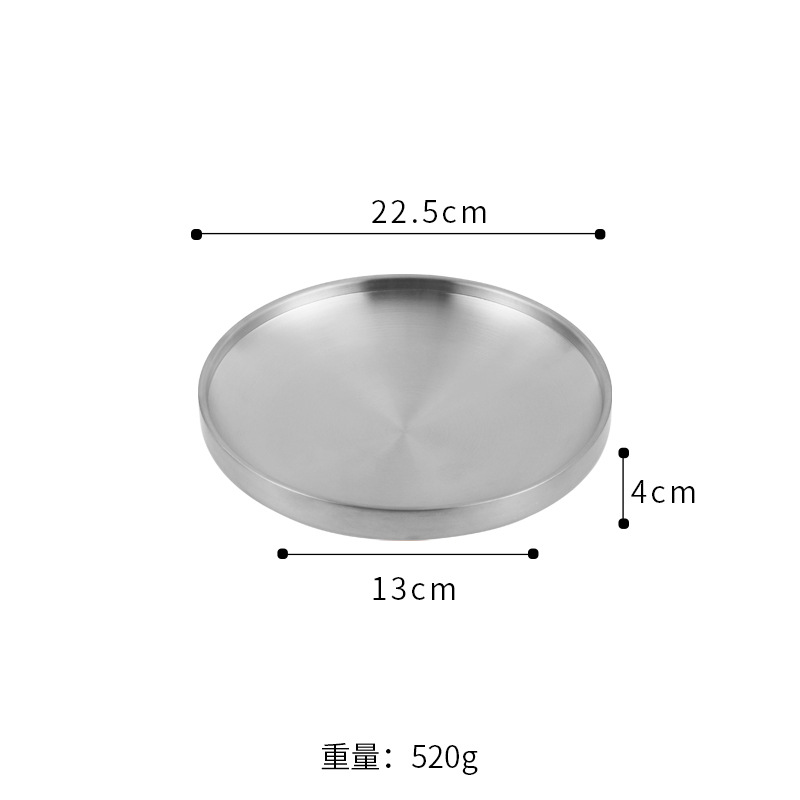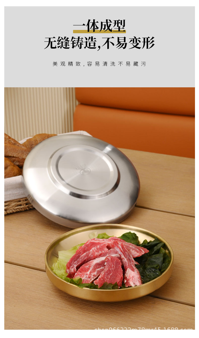 304 스테인레스 스틸 플레이트 이중층 단열 라운드 트레이 접시 상업 황금 바베큐 플레이트 한국식 바베큐 레스토랑 식기스토어 가기