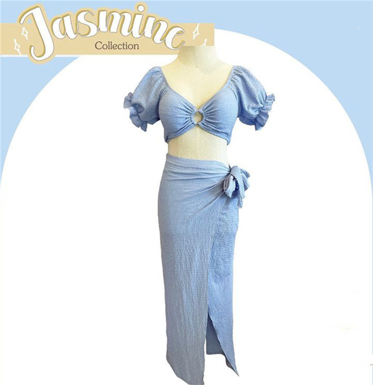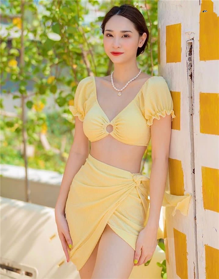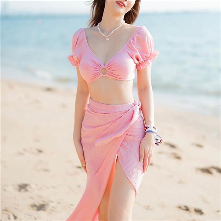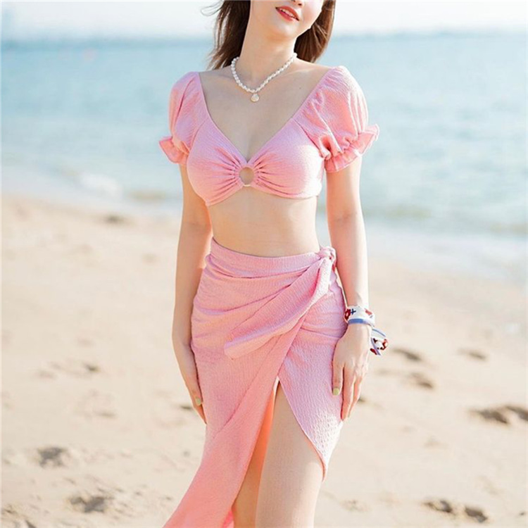 2023 일본과 한국의 새로운 여성 스플릿 단색 수영복 롱 스커트 슬림 신선한 슬림핏 고기 덮음 작은 가슴 개그 학생스토어 가기