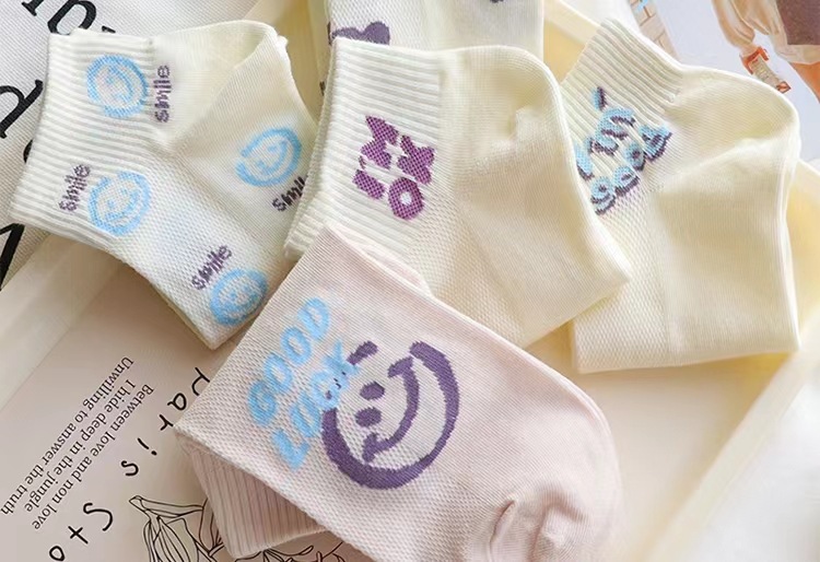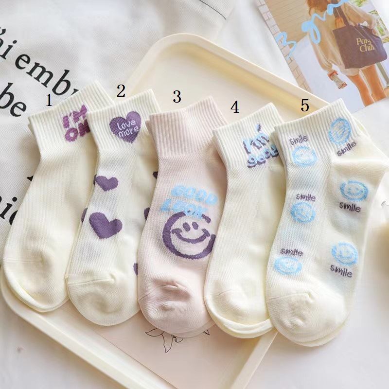 봄과 여름 양말 여성용 메쉬 통기성 귀여운 만화 보트 양말 트렌디 한 한국식 모든 매치 러브 스마일 레터 짧은 양말스토어 가기
