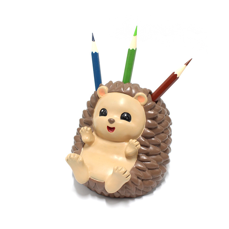폭발적인 도매 창조적 인 사무실 문구 홈 공예 데스크탑 수지 장식품 고슴도치 펜 홀더 휴대 전화 홀더