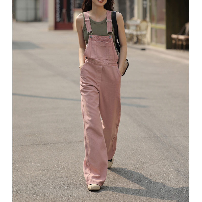 조정 가능! 연령 감소 워싱 디스트레스드 가죽 핑크 서스펜더 청바지 2025 봄 여름 여성을위한 새로운 루즈 캐주얼 바지스토어 가기