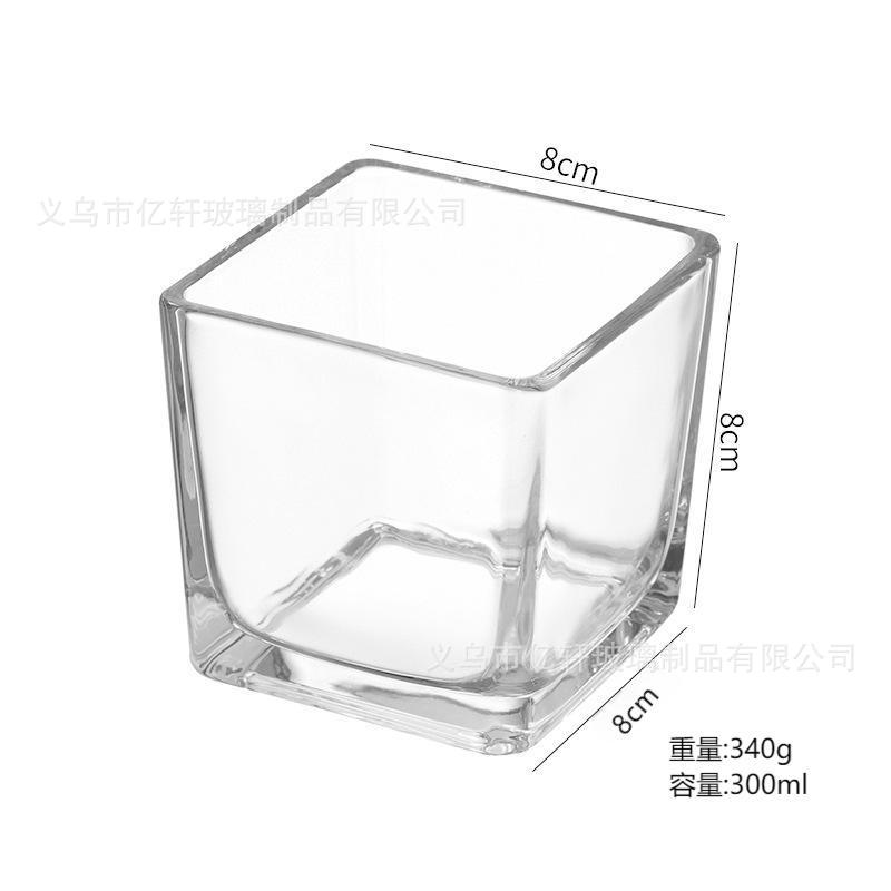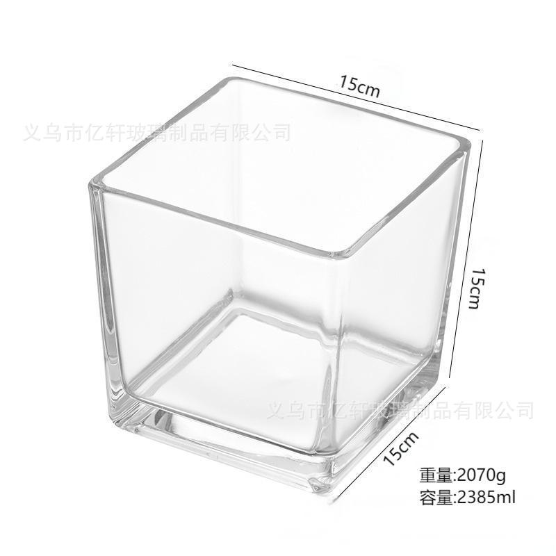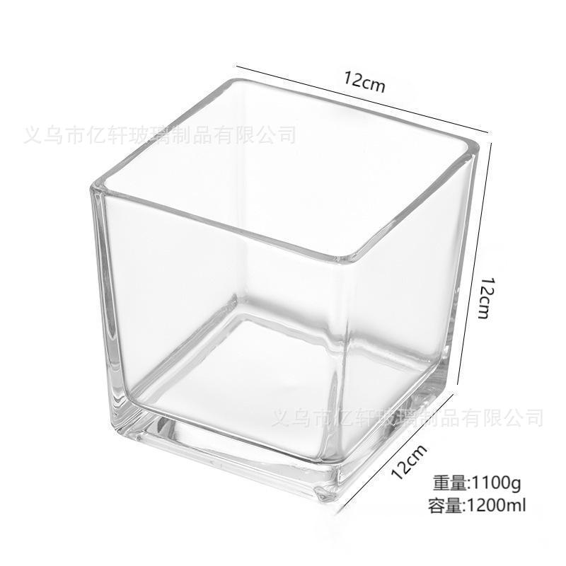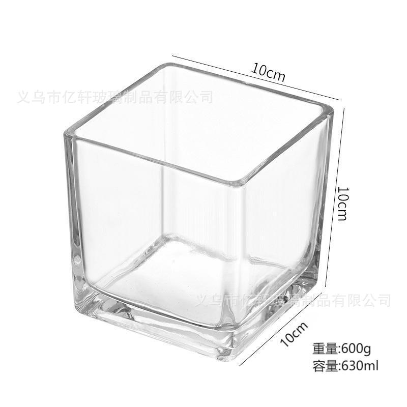 도매 사각형 유리 꽃병, 포토스 수경 화분, 사각형 항아리, 아로마 테라피 왁스 컵, 다육 거북이 수조, 녹색 식물