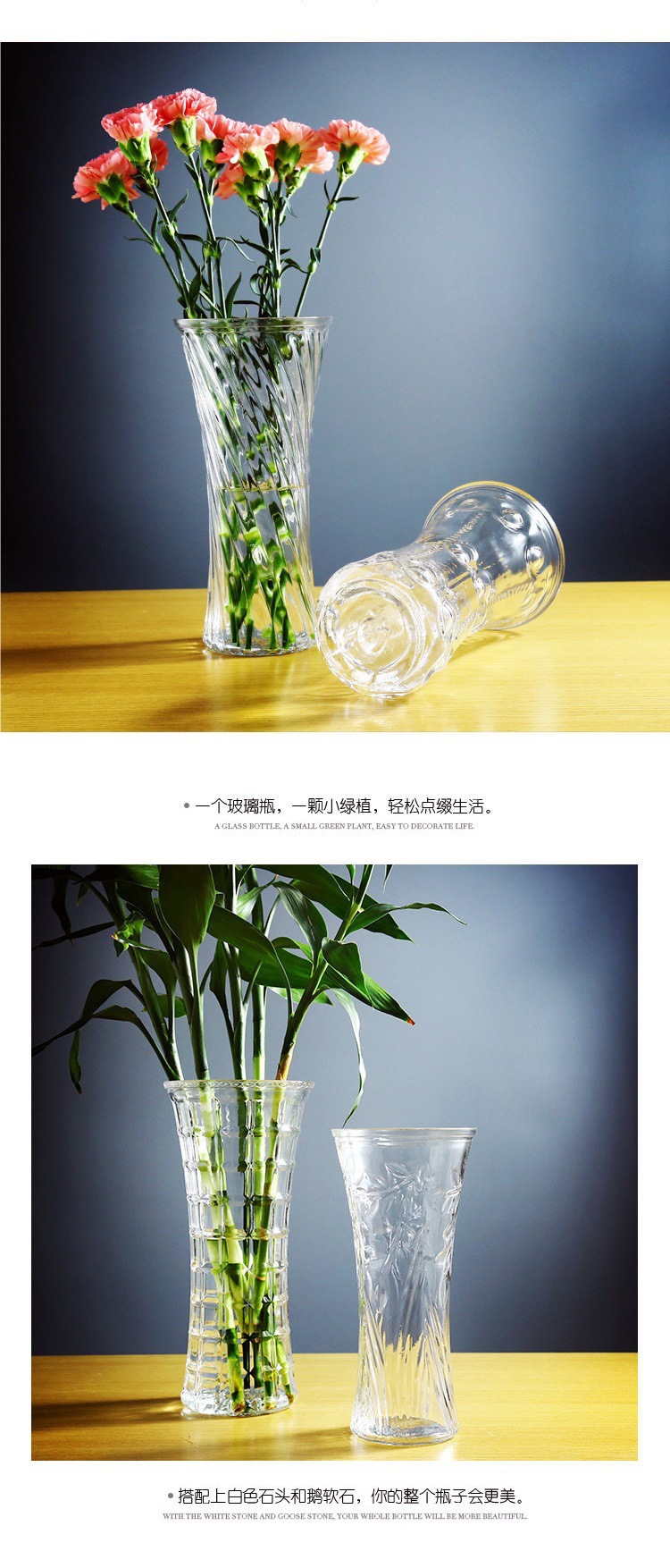 공장 스트레이트 헤어 투명 간단한 수경법 풍부한 대나무 유리 꽃병 크리스탈 거실 삽입 꽃 말린 꽃 장식품