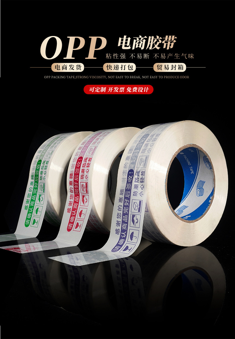 Bopp 파란색과 흰색 타오바오 테이프 언어 대형 롤 인쇄 상자 익스프레스 포장 테이프 씰링 투명 테이프스토어 가기
