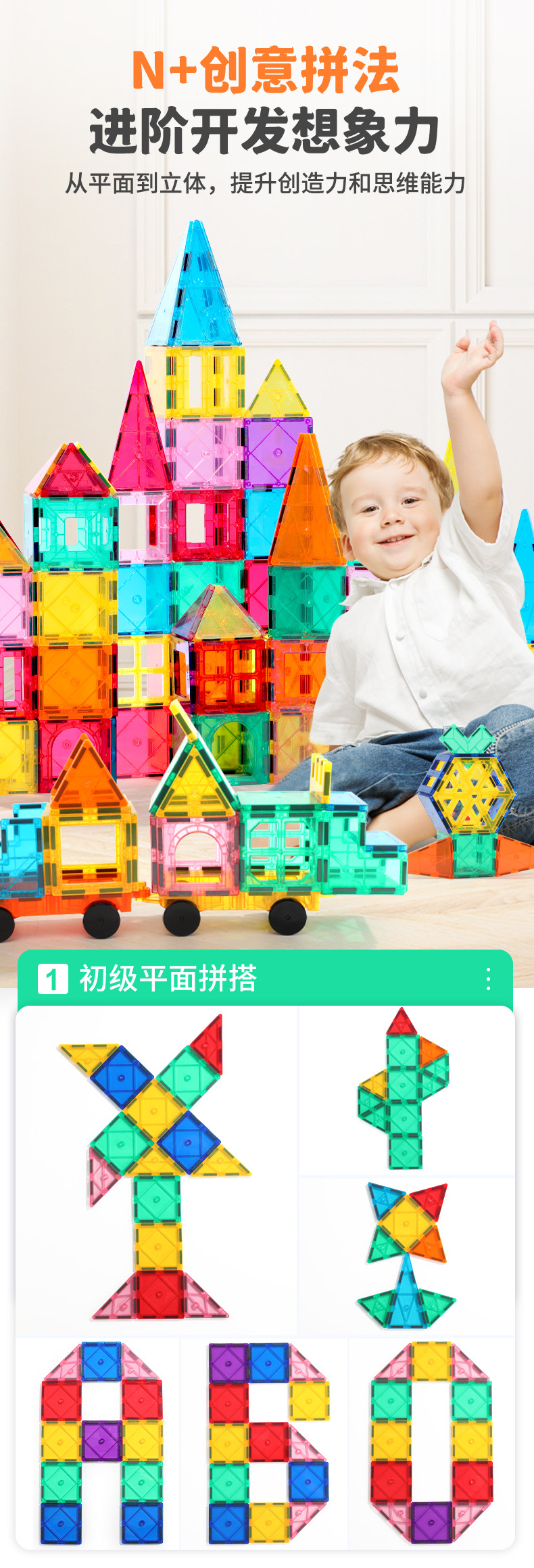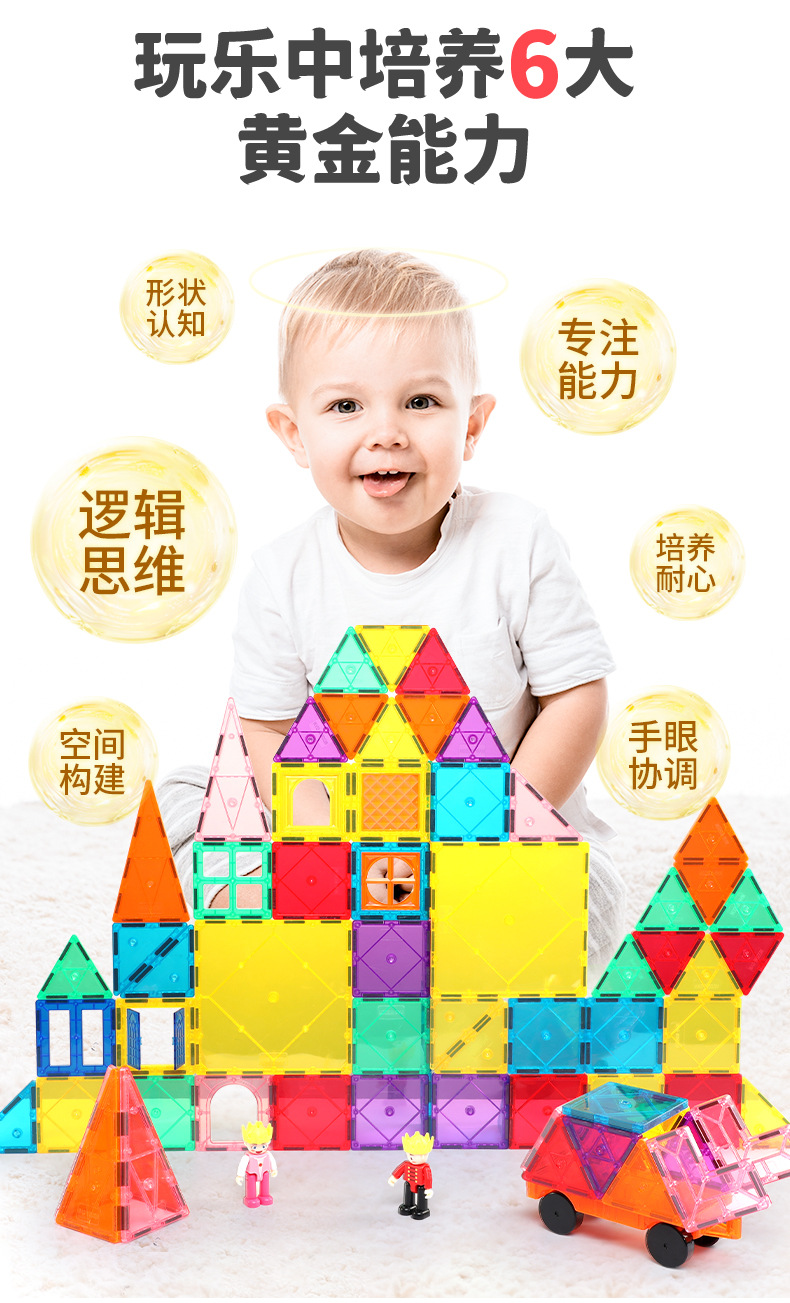 마그네틱 필름 어린이 교육 빌딩 블록 조기 교육 퍼즐 컬러 창 자석 장난감 60 조각 세트 스티칭 재고 도매스토어 가기