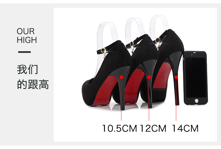 국경 간 전자 상거래 대외 무역 여성 신발 버클 스트랩 라운드 토 하이힐 여성용 스틸레토 힐 높은 방수 스웨이드 신발 여성 신발스토어 가기
