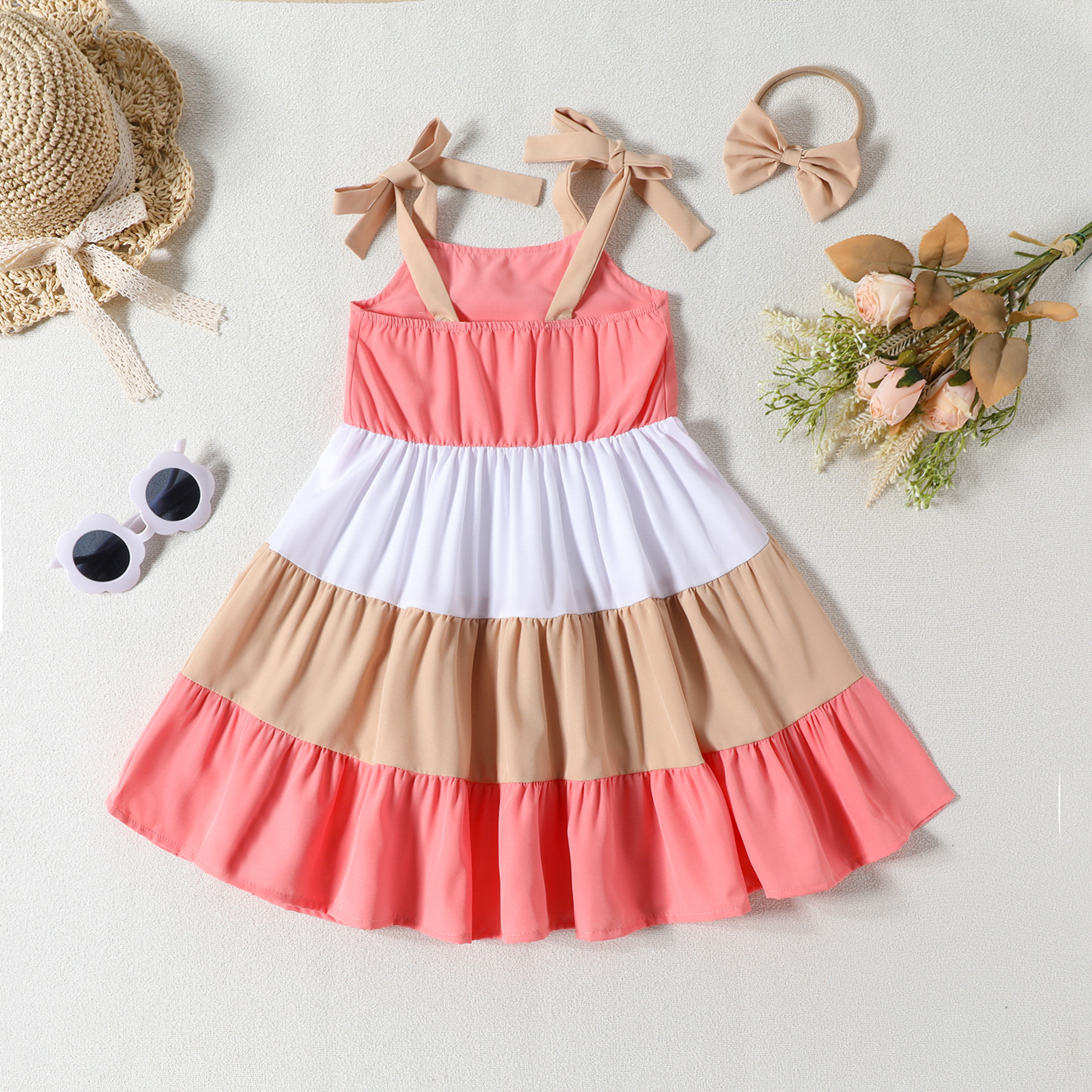 2023 년 여름 새로운 소녀 원피스 INS 바람 달콤한 색상 매칭 스커트 + 헤어 밴드 2 개 세트스토어 가기
