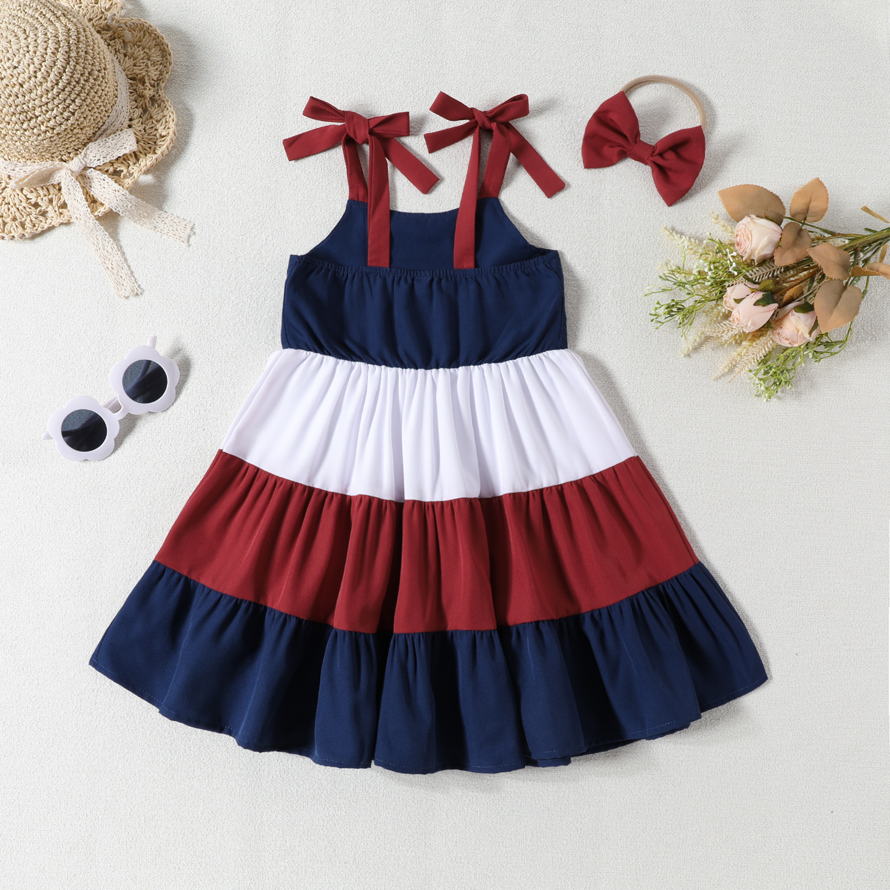 2023 년 여름 새로운 소녀 원피스 INS 바람 달콤한 색상 매칭 스커트 + 헤어 밴드 2 개 세트
