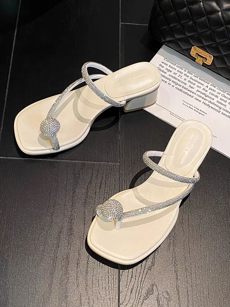 인터넷 연예인 라인 석 두꺼운 굽 샌들 여성의 여름 겉옷 2023 스커트 하이힐 샌들과 새로운 우아한 요정
