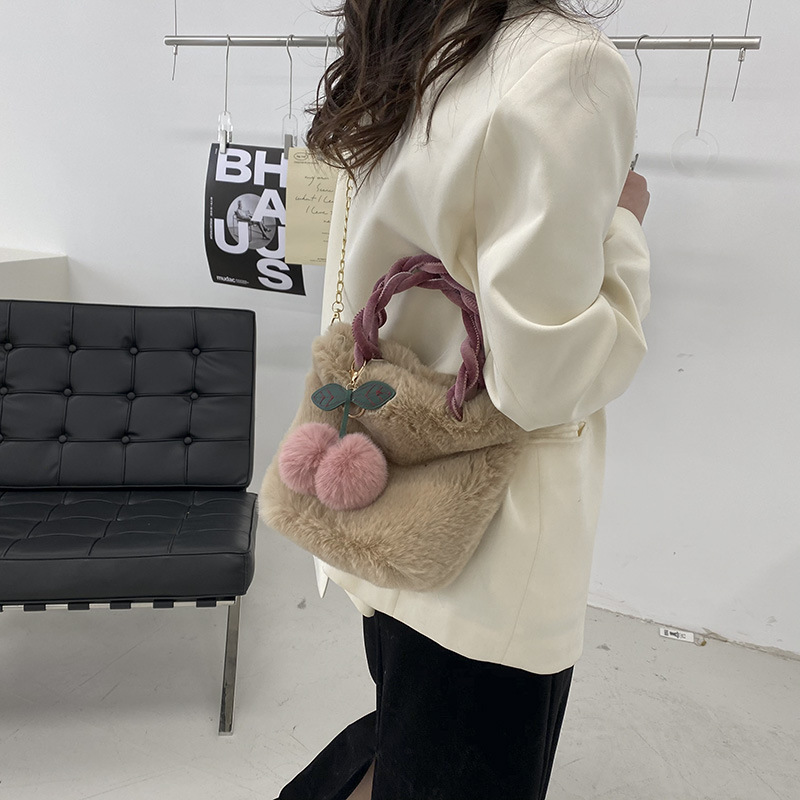 귀여운 소녀 체리 플러시 핸드백 여성의 틈새 새로운 가을과 겨울 대용량 푹신한 가방 숄더 크로스 바디 백
