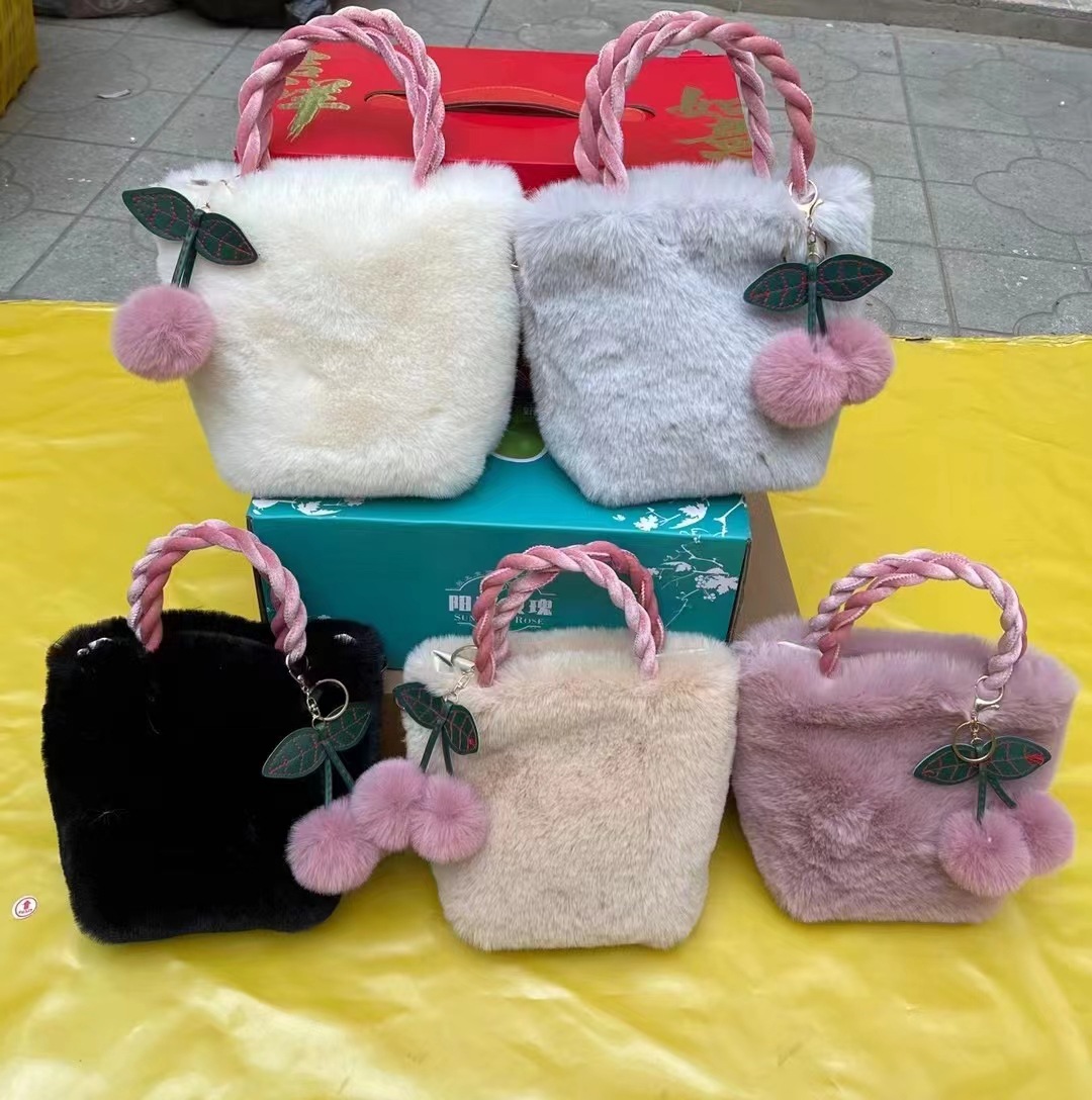 귀여운 소녀 체리 플러시 핸드백 여성의 틈새 새로운 가을과 겨울 대용량 푹신한 가방 숄더 크로스 바디 백스토어 가기