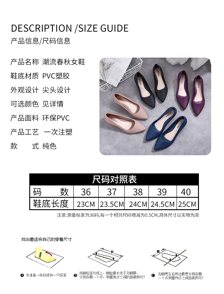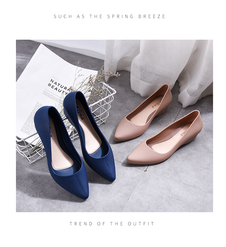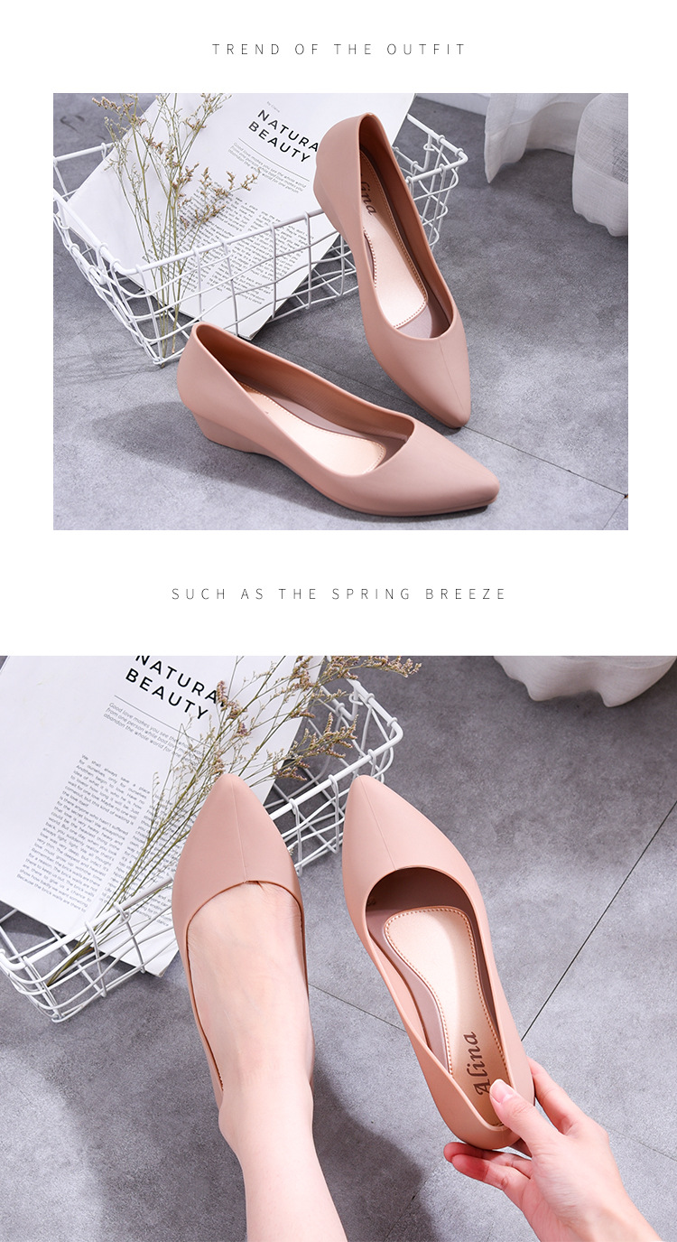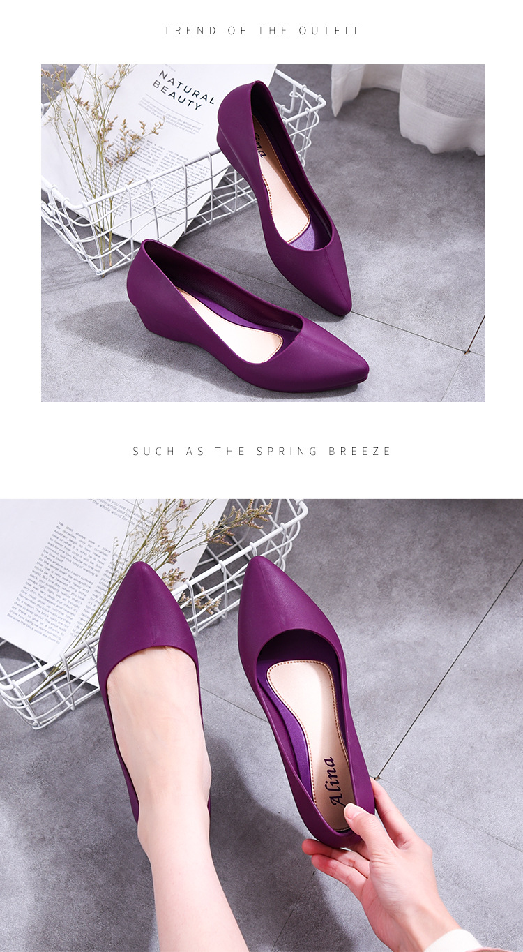 유행 복장 방수 신발 장화 장화 여성의 인터넷 인기 플라스틱 뾰족한 낮은 탑 고무 신발 작업 물 부츠 경량 여름스토어 가기