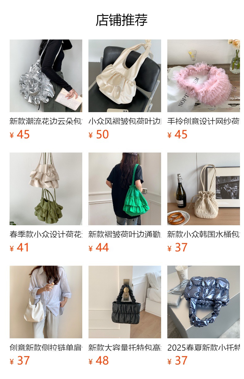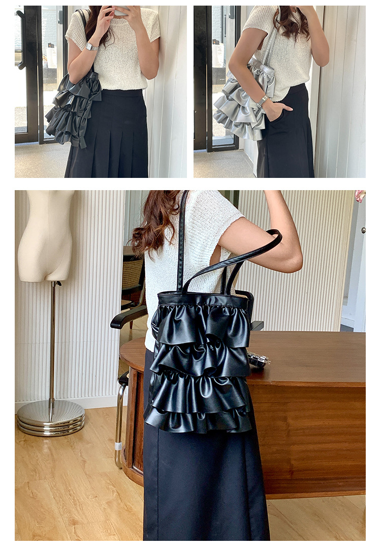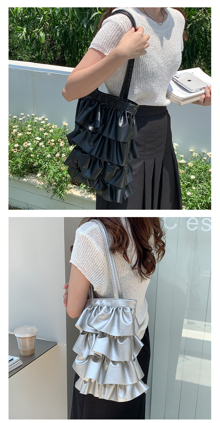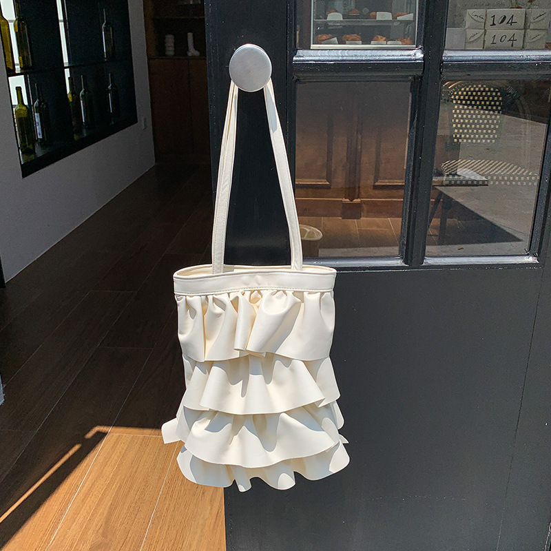 봄 여름 스타일 개성 토트백 대용량 숄더백 여성용 독특한 프릴 주름 겨드랑이 가방 고급스러운 느낌스토어 가기