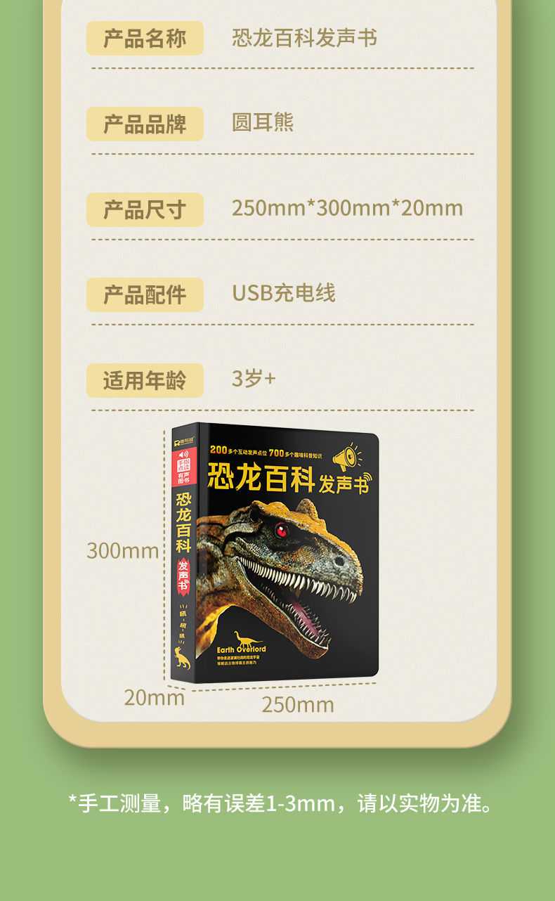 공룡 백과 사전 3-6 세 어린이 공룡 이야기 그림책 요점 독서 음성 책 계몽 조기 교육